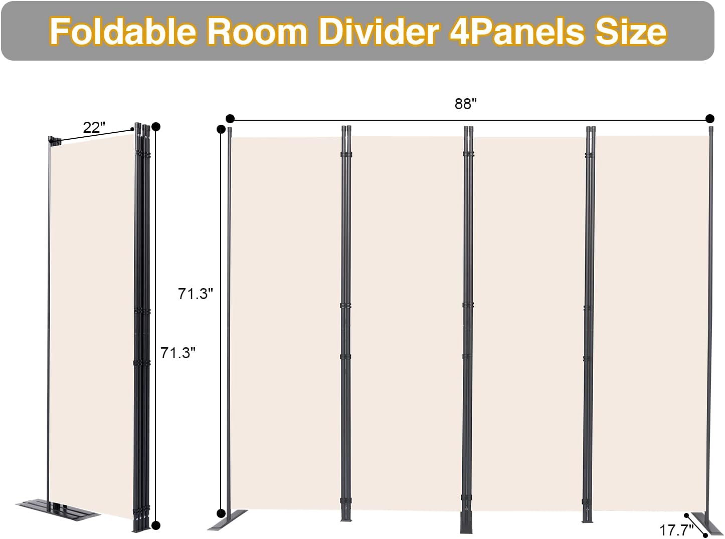 Room Divider, 4 Panel Folding Privacy Screens with Wider Support Feet, 6 Ft Portable Room Partition for Room Separator, 88" W X 71" H, Beige