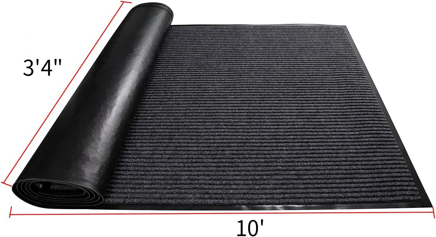 TANYOYO 3' X 10' Commercial Grade Door Floor Mat Brush Step Entrance Mat Vinyl Backed Utility Doormat Heavy Duty Floor Rugs Commercial Outdoor Carpet Indoor Entrance Mat,Grey