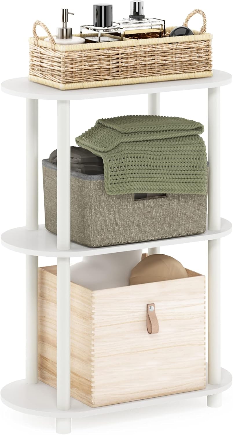 Furinno Turn-N-Tube No Tools 3-Tier Modern Oval Side Display Rack, White/Virgin White