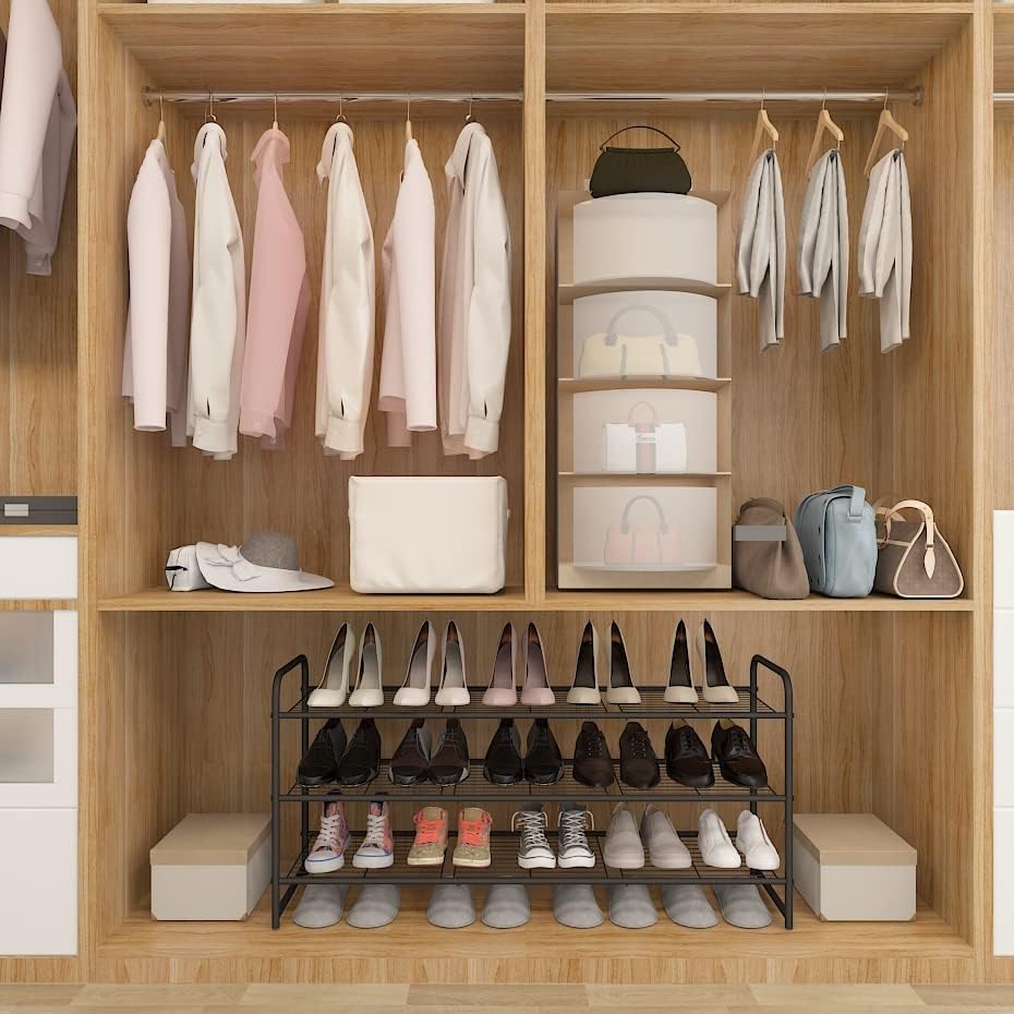 - Stackable & Expandable Design: This shoe rack is expandable and adjustable. You can stack multiple units or bridged horizontally to expand the unit. You can maximize storage space in the same space.