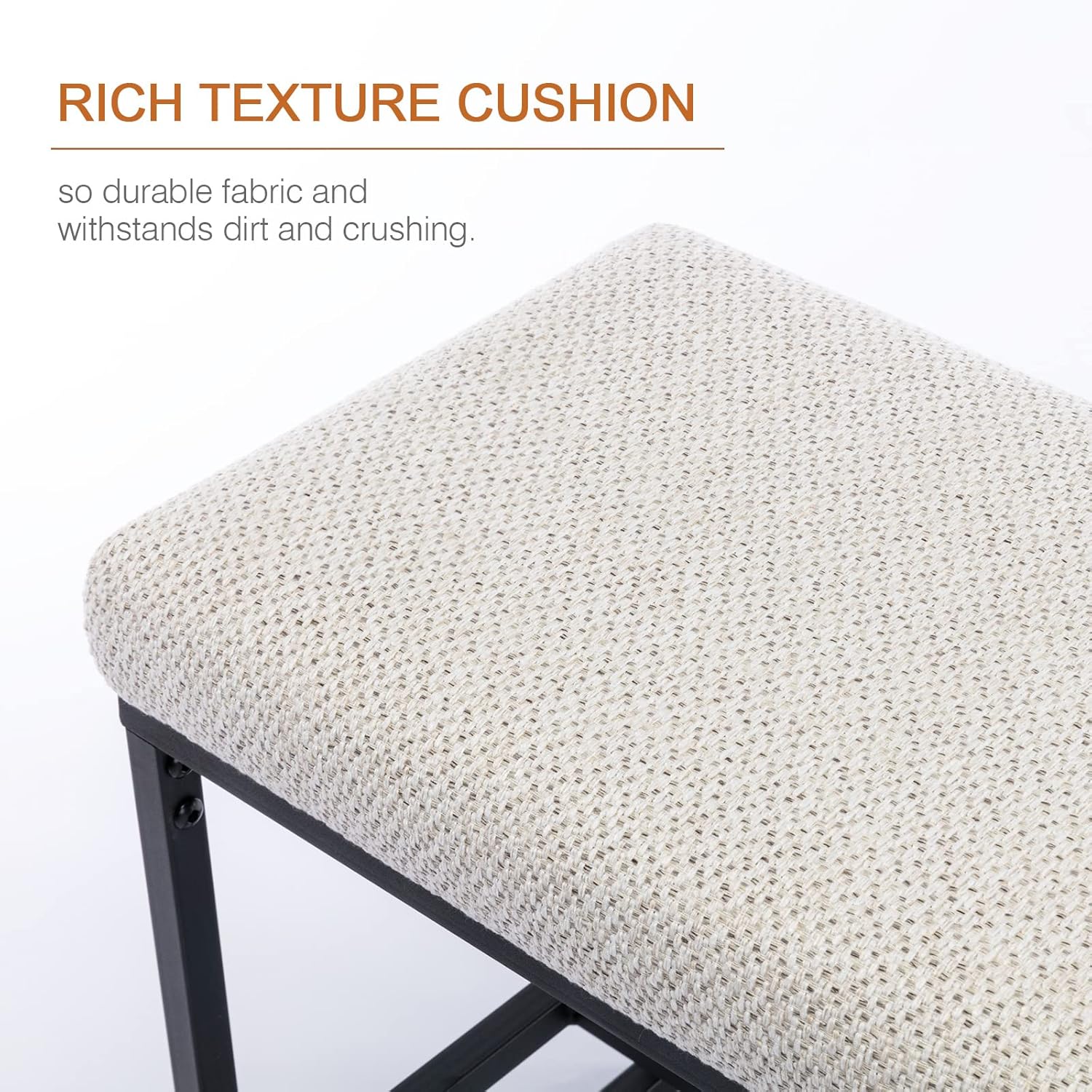 - âENJOY RICH TEXTURE: Itâs cheerful and eye-catching to pair durable linen cushion filled in high-density sponge, having the advantages of permeability and comfort everywhere you touched. Because of coating process and high-temperature treatment, the whole surface of shoe rack has implemented a smoother and tighter stainless paint, additionally we designed tactfully with double screws guarantee for completely fastening of the frame, ensuring a long-term service.