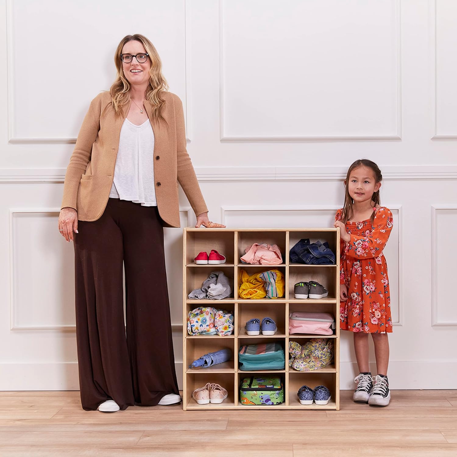 ECR4Kids Streamline 15 Cubby Tray Storage Cabinet, 5x3, Classroom Furniture, Natural