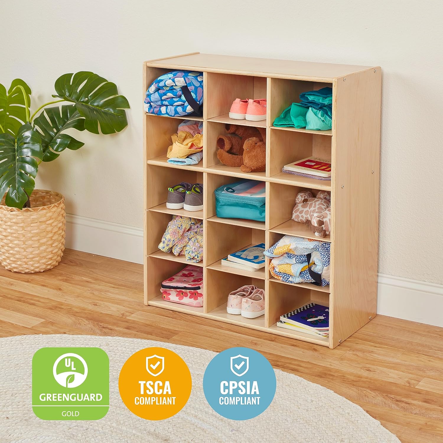 - Certified Safe: Storage shelf is GREENGUARD [GOLD] Certified for low VOCs, TSCA and CPSIA compliant; features rounded corners and edges for added safety
