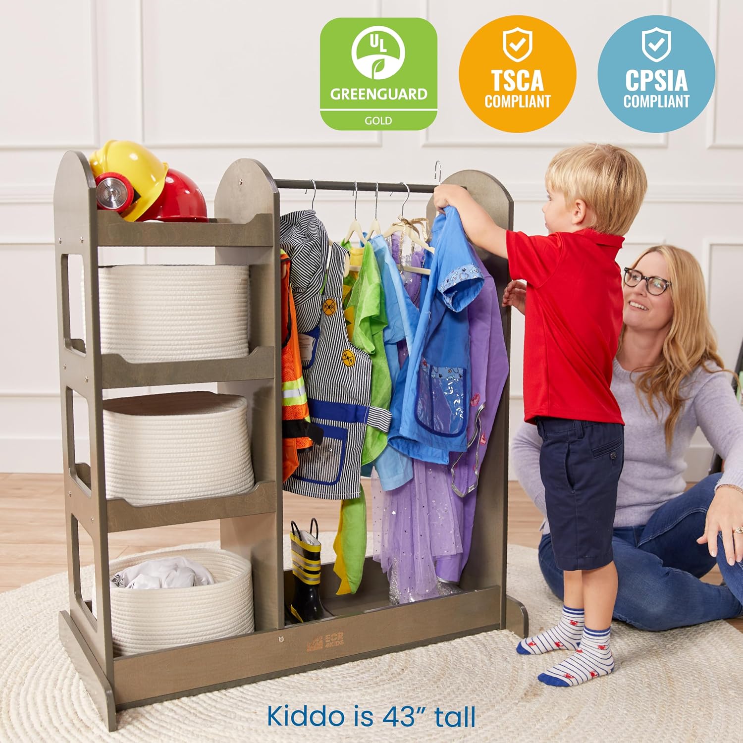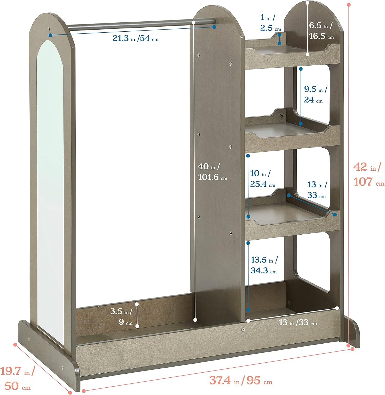 ECR4Kids Dress Up Center with Mirror, Costume Organizer, Grey Wash