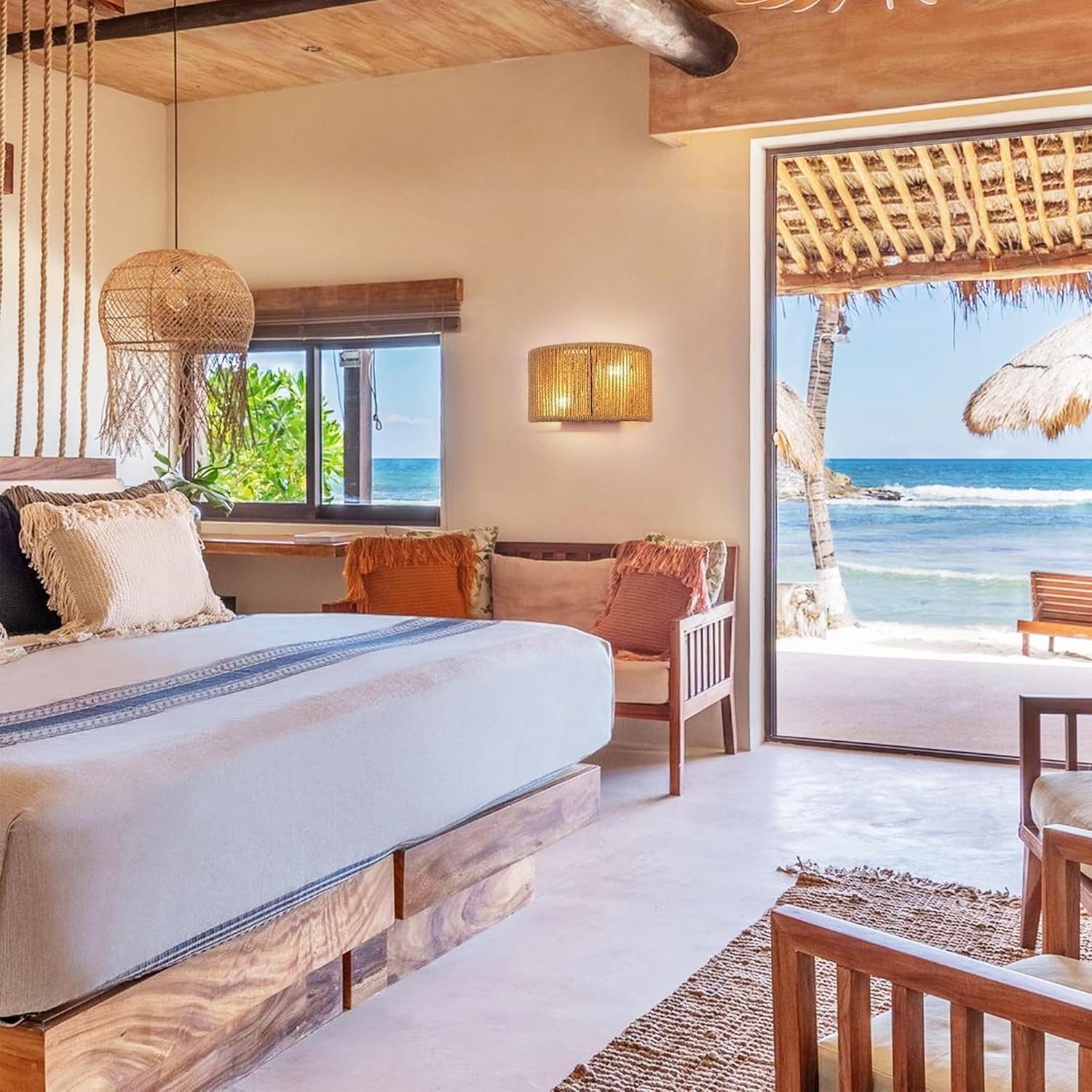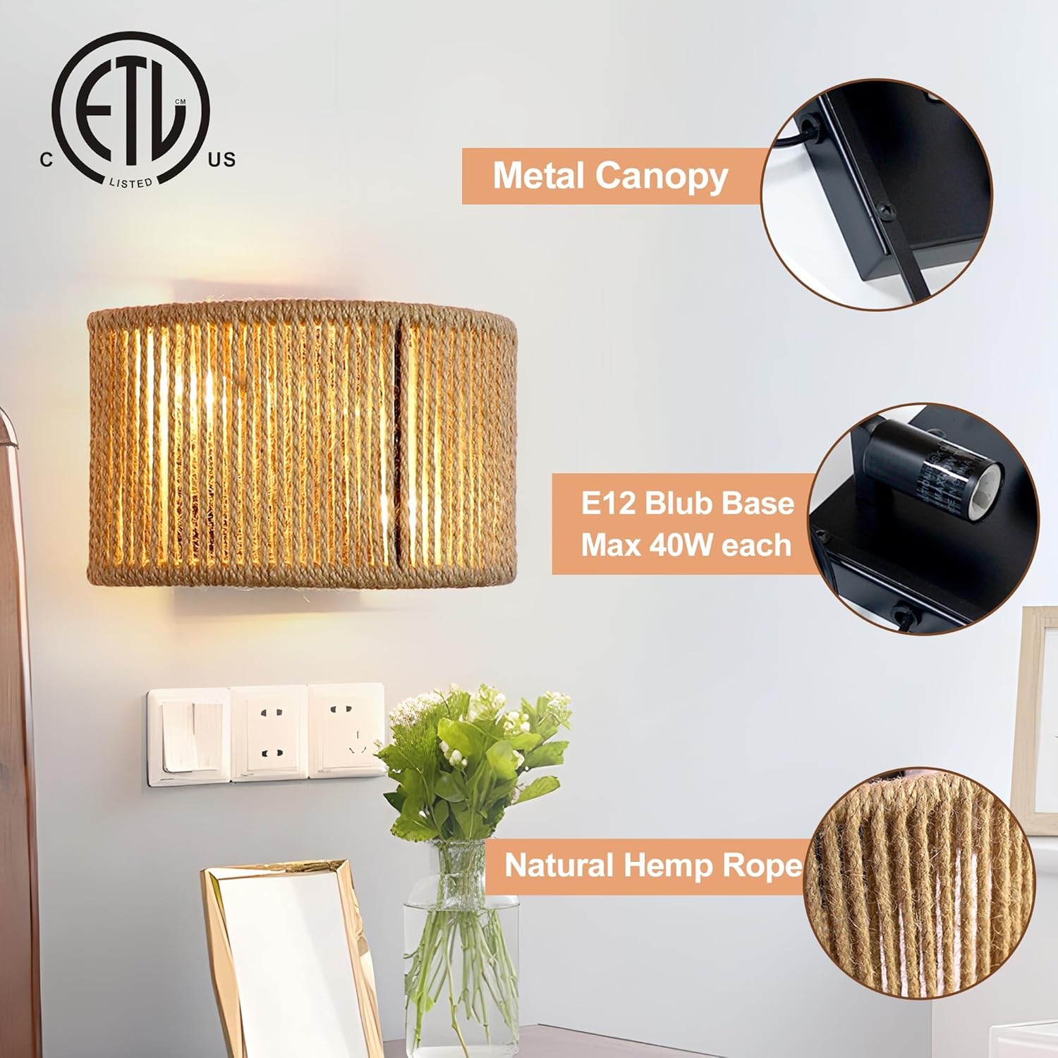 - Wide Application: Ideal for indoor use, the wicker wall sconce can be installed in bedrooms, stairwells, living rooms, porches, bedside, hallways, and more, providing a touch of sophistication and warmth to any area.