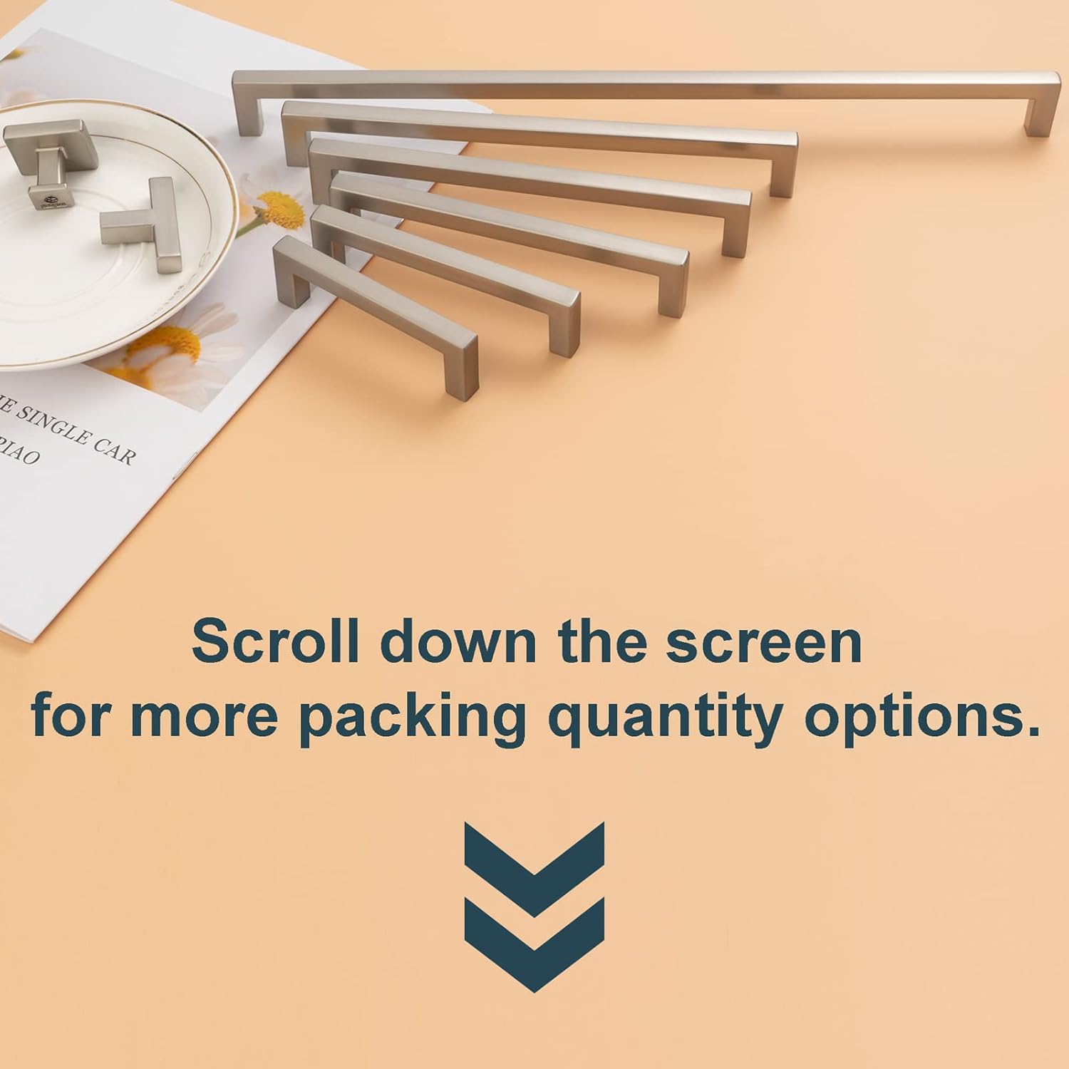 - Pack of 30 brushed nickel square bar cabinet pull handles, solid metal hardware.