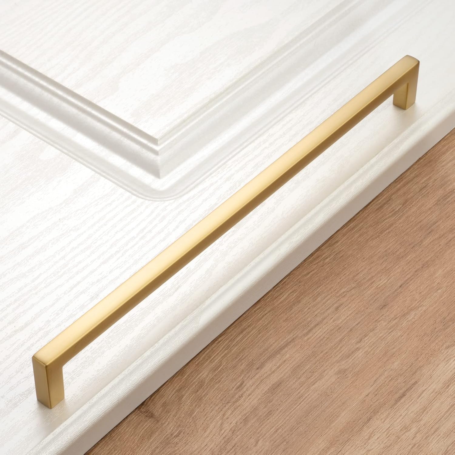 - Pack of 1 brushed gold square bar cabinet pull handles, solid metal hardware.
