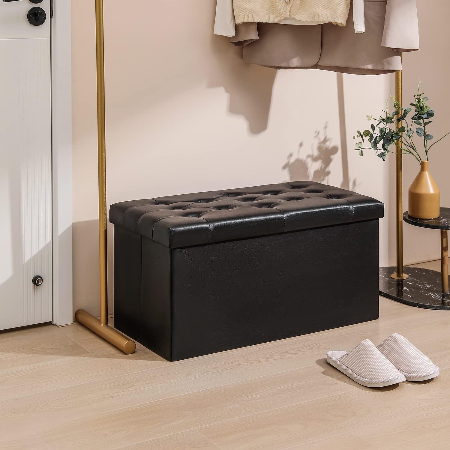 PRANDOM Extra Large Ottoman with Storage [1-Pack] Faux Leather Folding Small Square Foot Stool with Lid for Living Room Bedroom Coffee Table Dorm Black 30.5x15x15 inches