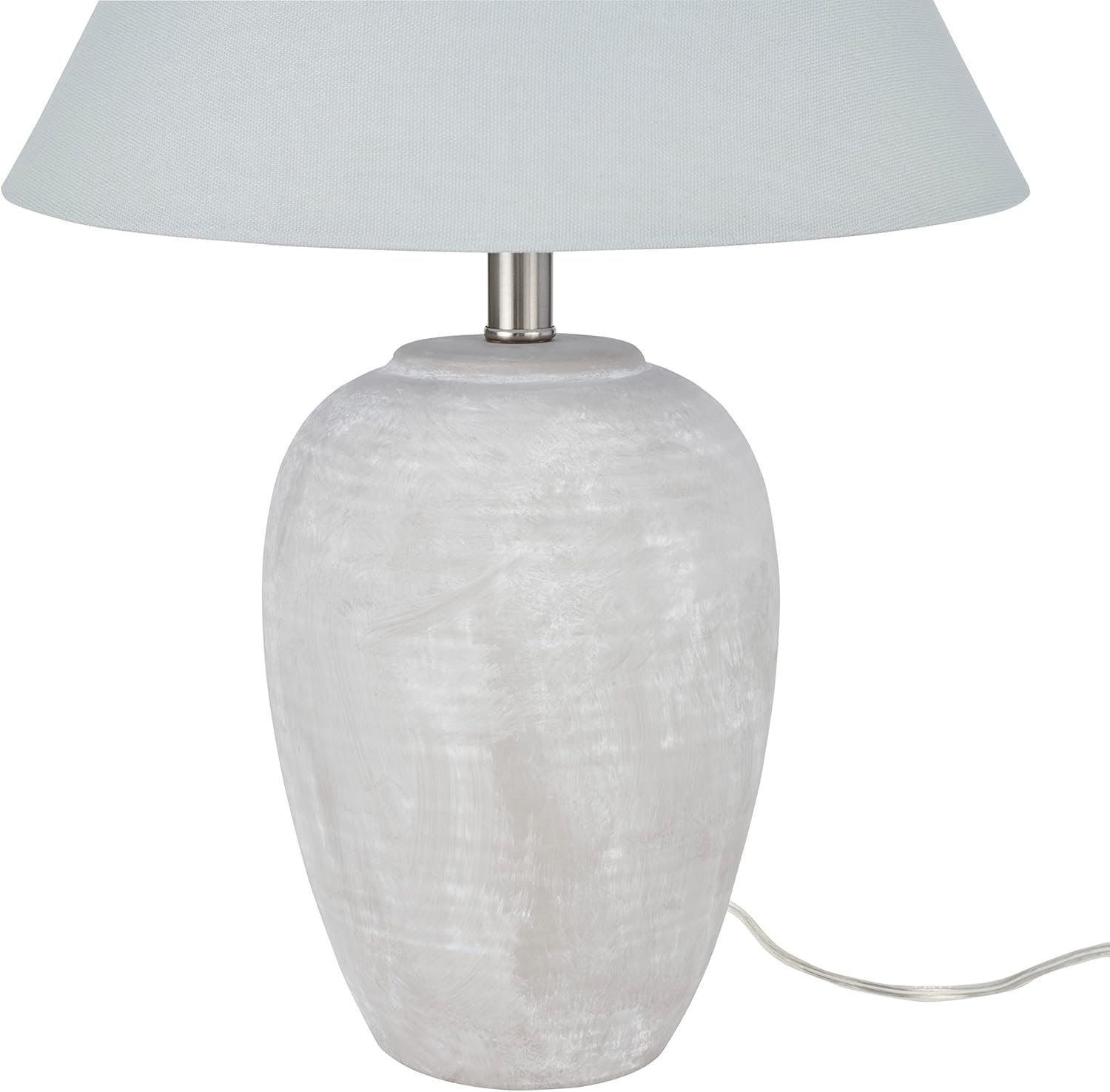 Nourison Home 23" Grey Vintage Distressed Ceramic Pot Table Lamp for Bedroom, Living Room, End Table, with Grey Conical Empire Shade