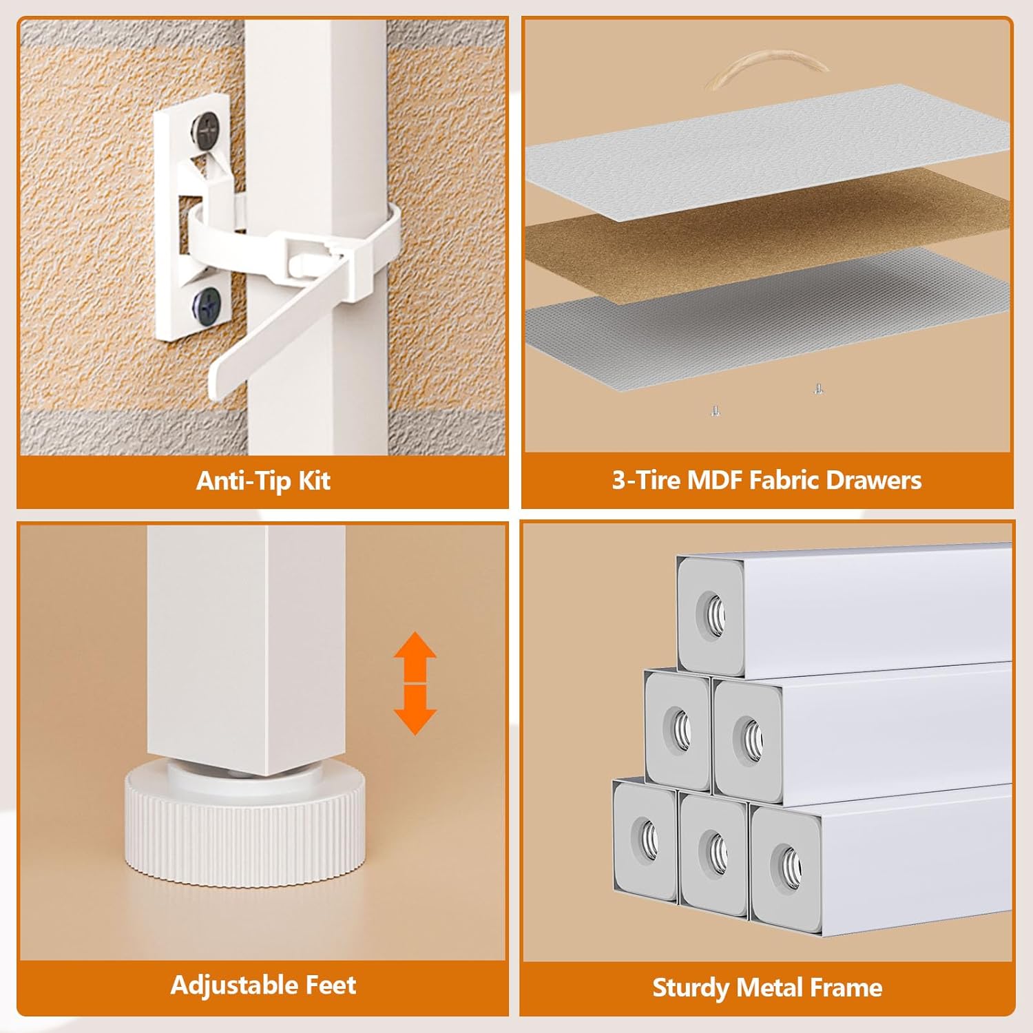 - Safe and Stable : Friendly to young ones, This dresser for bedroom won't pinch hands if little guys want to organize their clothing in drawers . The anti-tip kit to install the dresser on the wall to provides a safe environment for your family