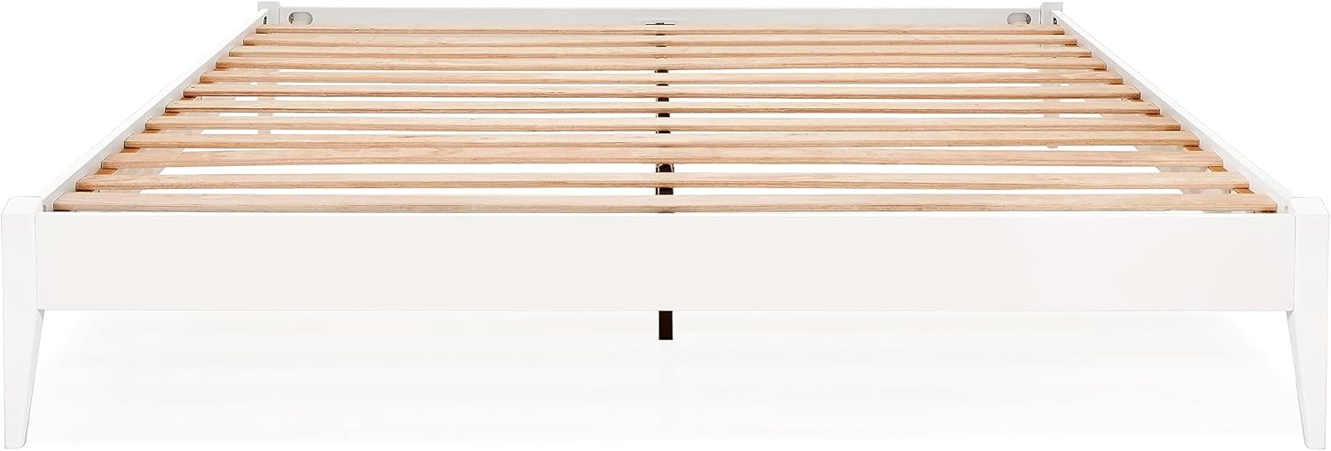 Bme Dinkee Signature Ivory White King Bed Frame Without Headboard - Modern & Minimalist Style with Acacia Wood - 12 Strong Wood Slat Support - Easy Assembly - No Box Spring Needed