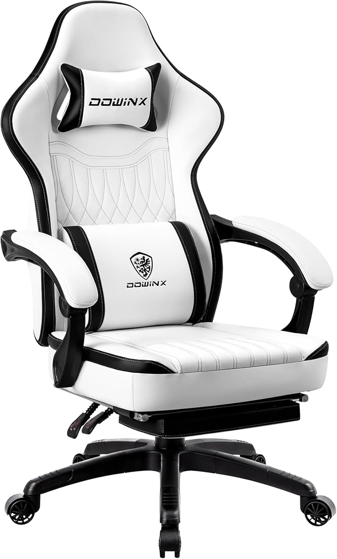 Dowinx Gaming Chair Breathable PU Leather Gamer Chair with Footrest Massage Lumbar Support, Big and Tall Ergonomic Reclining Computer Chair with Pocket Spring Cushion for Adults Teens (Black&White)