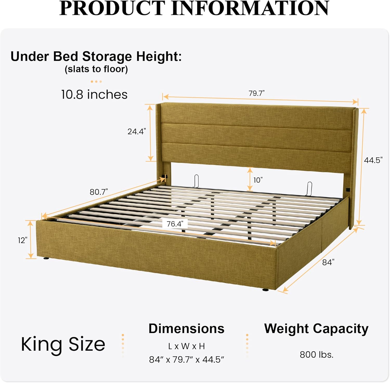 SHA CERLIN King Size Lift Up Storage Bed/Modern Wingback Headboard/Upholstered Platform Bed Frame/Hydraulic Storage/No Box Spring Needed/Wood Slats Support/Olive Yellow