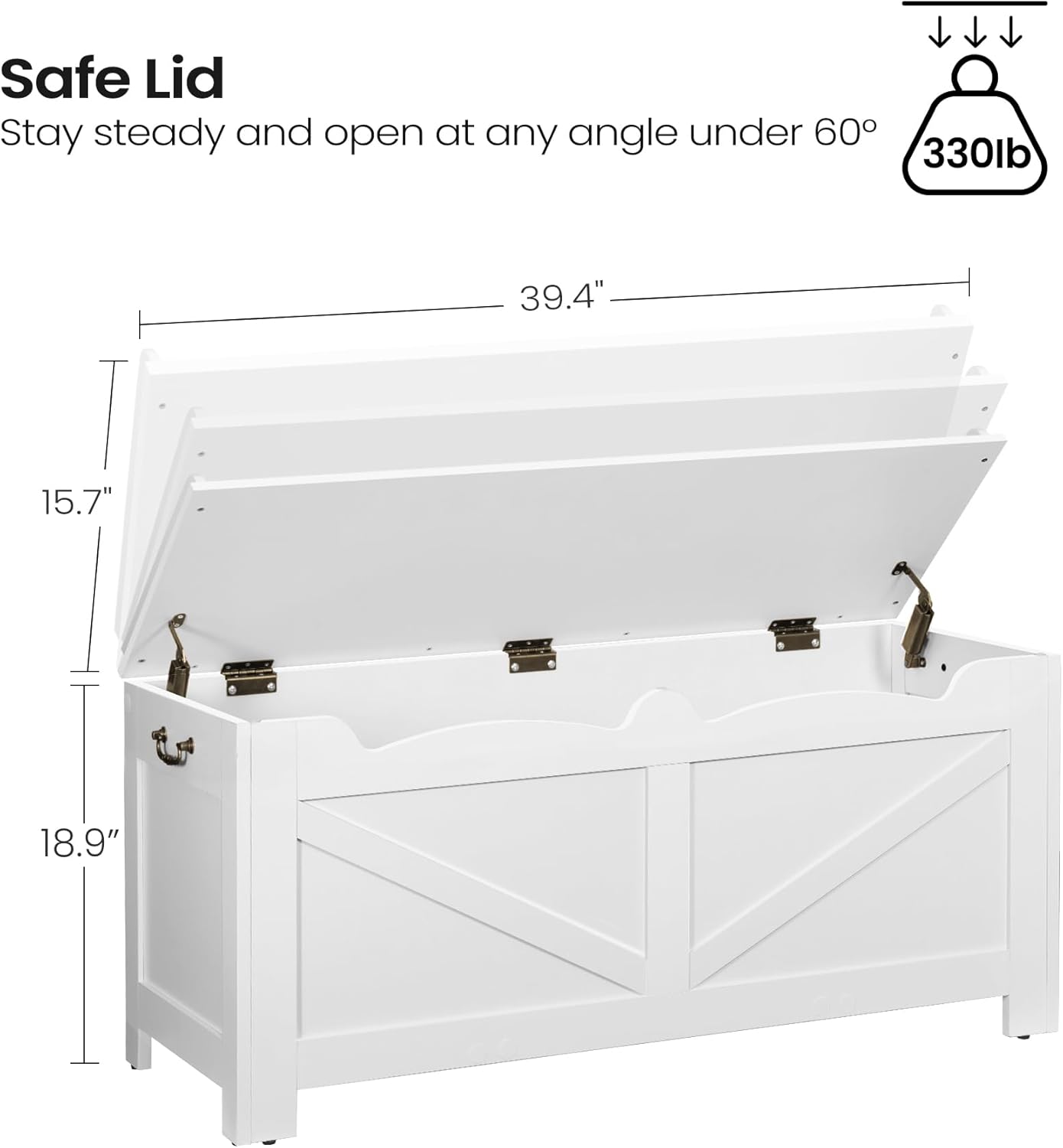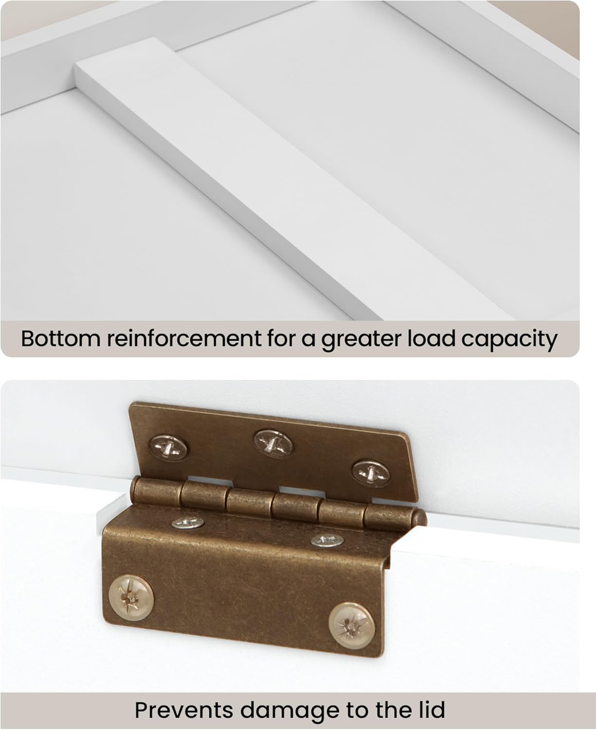 - 【Stabilized and Safe】Made of premium particleboard, this wooden storage bench is much more stabilized, the 2 safety hinges allow the lid to hover securely, prevent hand pinching, making it safer for daily use