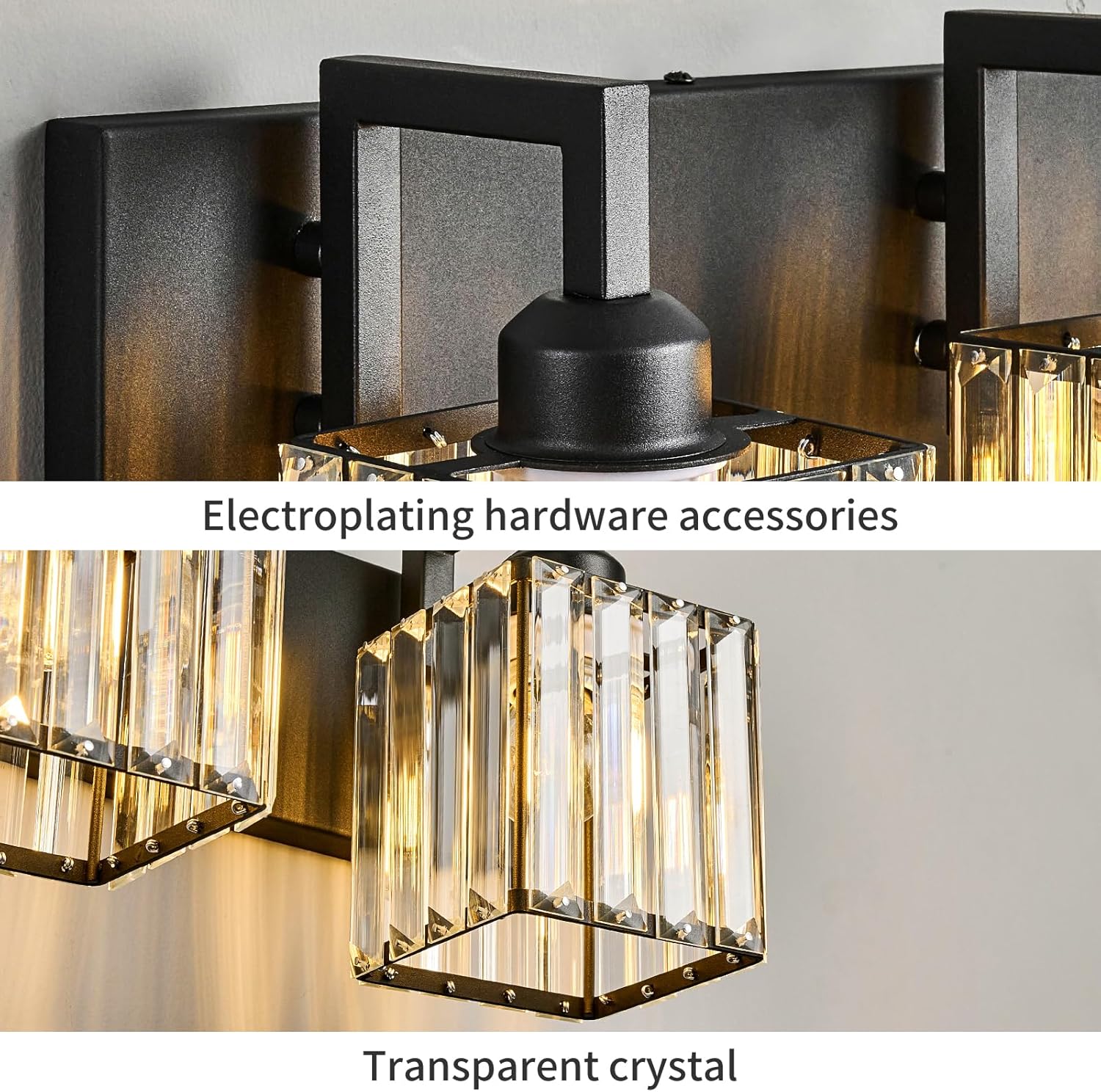 - 【High Quality Manufacturing】 The shade of the vanity light is made of clear K9 crystal, and the base and arm are made of black finish, resistant to corrosion and moisture, sturdy and durable. Can create a beautiful lighting effect, bathroom vanity lighting simple and luxurious design shows your taste.