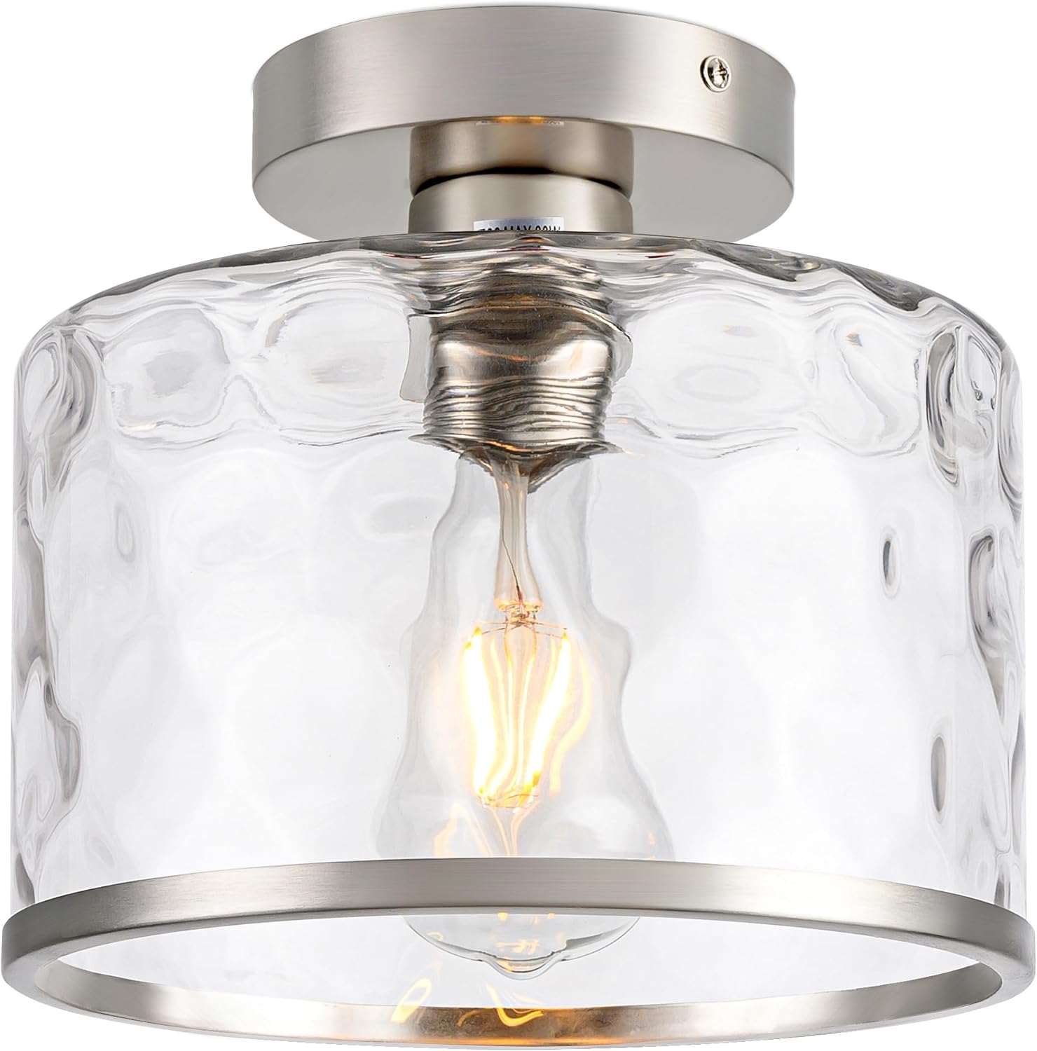 Modern Semi Flush Mount Ceiling Light with Industrial Clear Hammered Glass Lampshade, Farmhouse Ceiling Lights fixtures in Satin Nickel for Hallway Kitchen Bathroom Bedroom