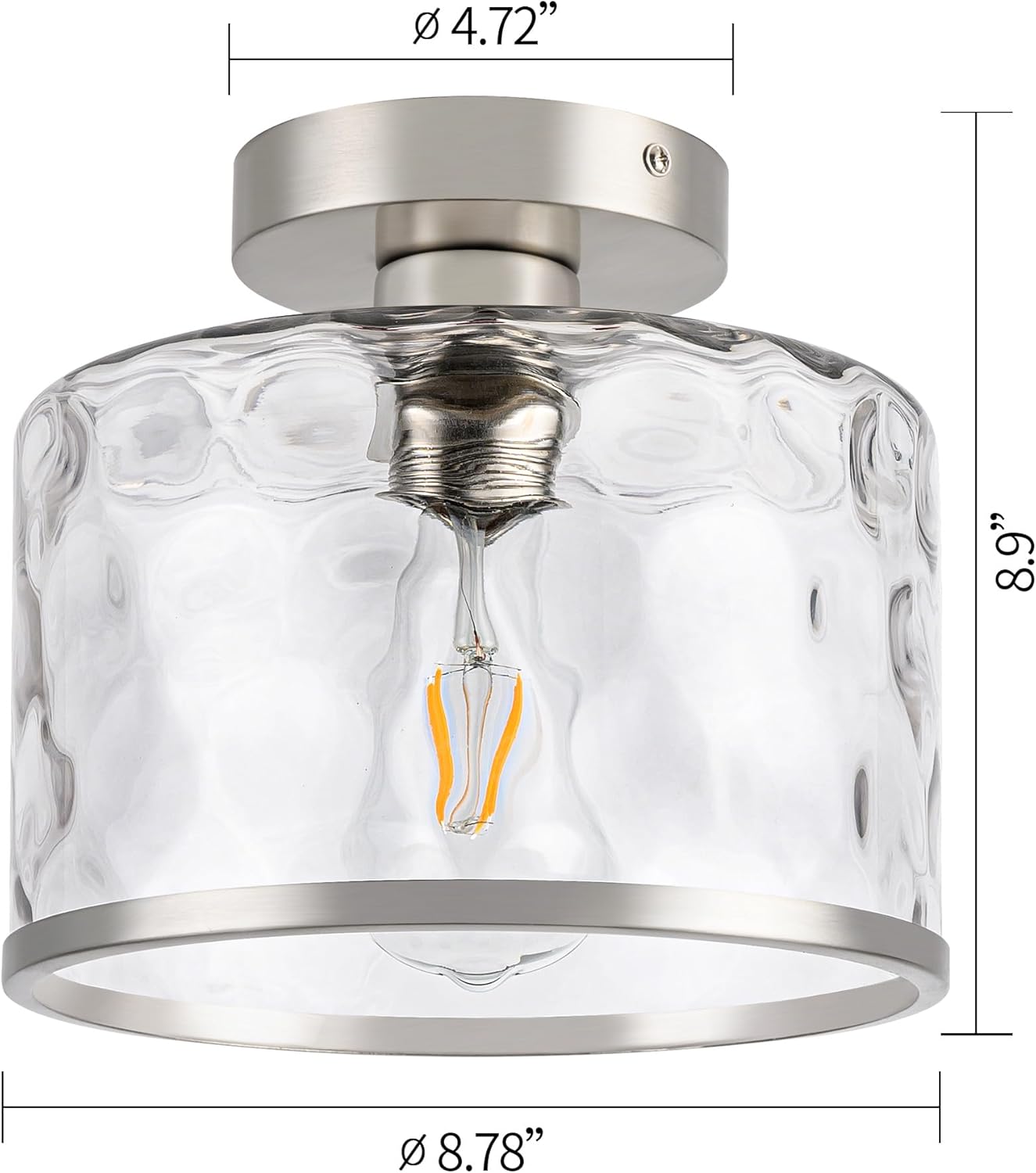- Modern Semi-Flush Mount Ceiling Light: Blends brushed nickel metal with hammered glass for farmhouse-industrial charm. Clear glass casts warm light patterns