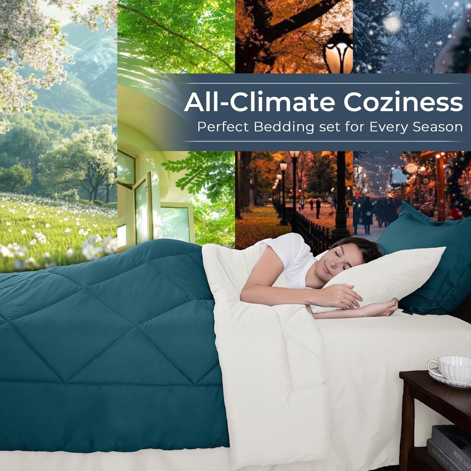 HEVUMYI Twin Comforter Set - 5-Piece All Season Bed in a Bag Twin, Ultra Soft Bedding Set with Comforter, Flat Sheet, Fitted Sheet, Pillowcases, Pillow Shams, Peacock Blue & Ivory
