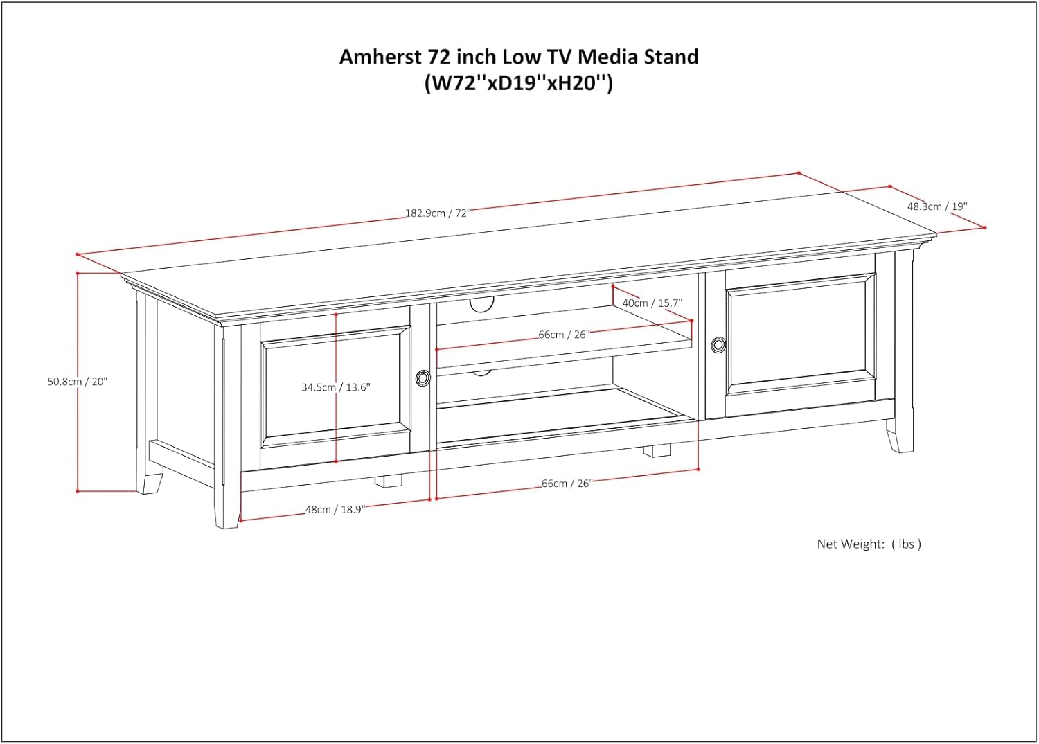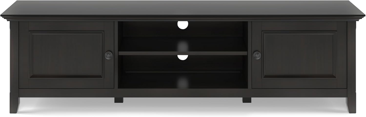 SIMPLIHOME Amherst 72-inch Wide Solid Wood Low TV Stand in Hickory Brown, Transitional-Style Media Console for Living Room with Cable Management, Fits 80" TVs