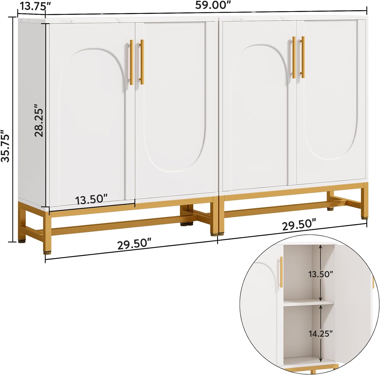 - Modern design: The sleek white and gold color scheme and metal frame make this sideboard the perfect accent piece for any modern or contemporary home.