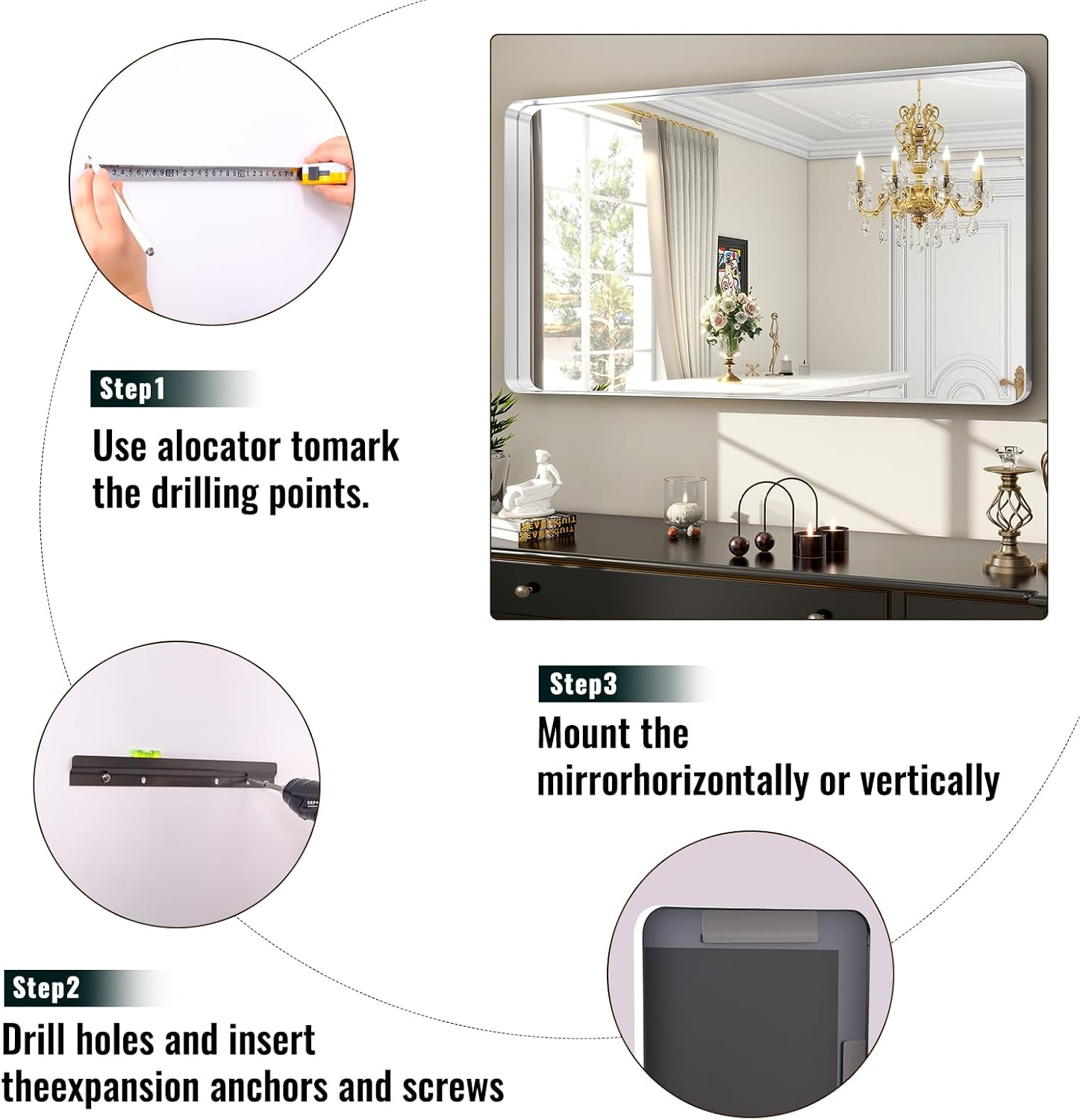 - Easy Installation: Our vanity bathroom mirrors come with all the necessary hardware kits. These wall-mounted bathroom vanity mirrors are incredibly easy to install and can be mounted horizontally or vertically. They feature hanging hardware on the back, providing added stability and security for your bathroom mirrors