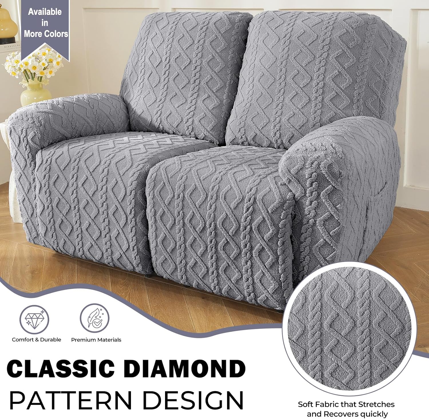vctops 6 Pieces Geometric Jacquard Plush Recliner Loveseat Slipcovers Soft Fuzzy Fluffy Sofa Couch Cover Anti-Slip Furniture Protector with Elastic Bottom for Kids Cats Dogs(Grey,2 Seat)