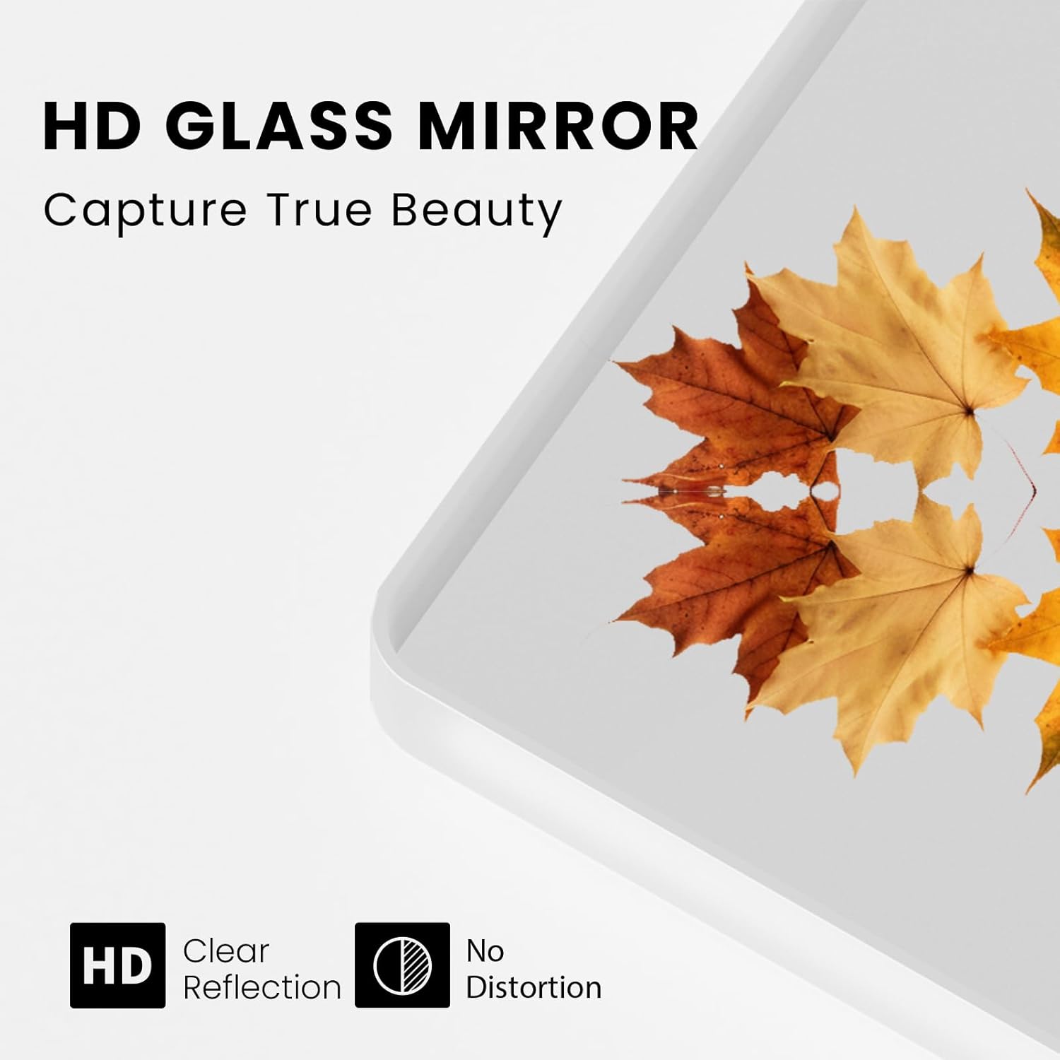 - HD Refection and No Distortion: JISOSO white bathroom mirror adopts HD float glass technology, it reproduces a true-to-life image, without blurring or distortion, quick defogging, durable, and easy to clean