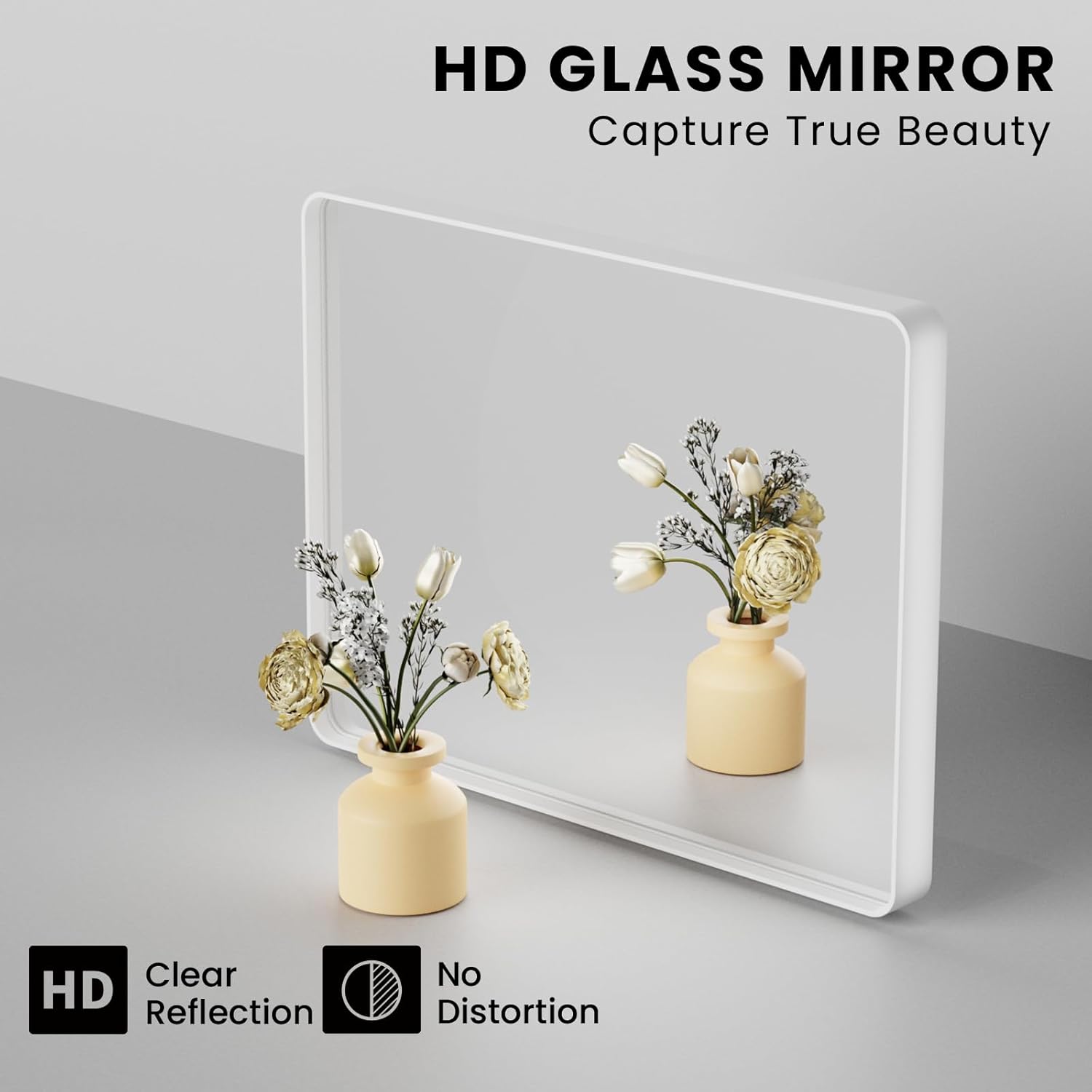 - HD Refection and No Distortion: JISOSO white bathroom mirror adopts HD float glass technology, it reproduces a true-to-life image, without blurring or distortion, quick defogging, durable, and easy to clean