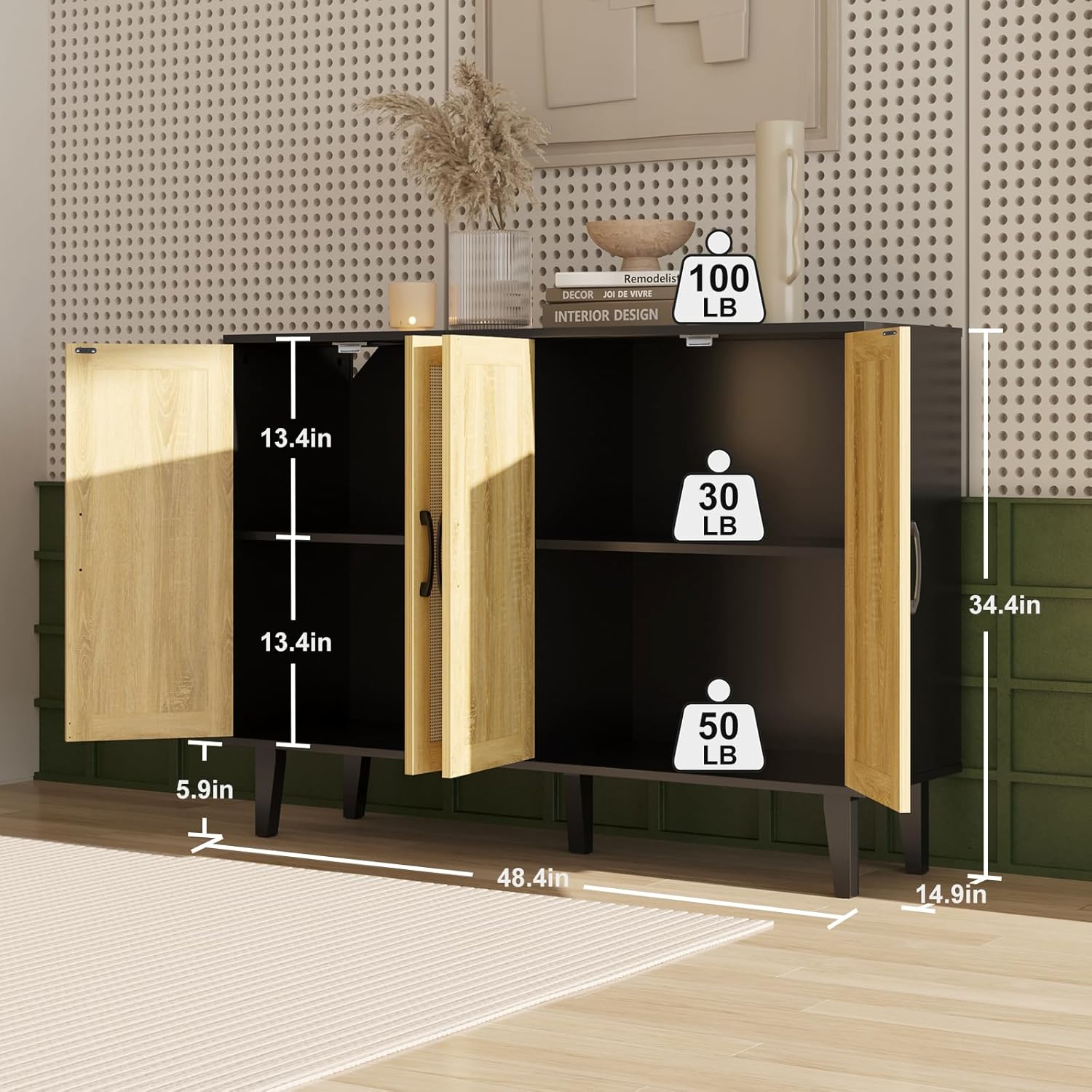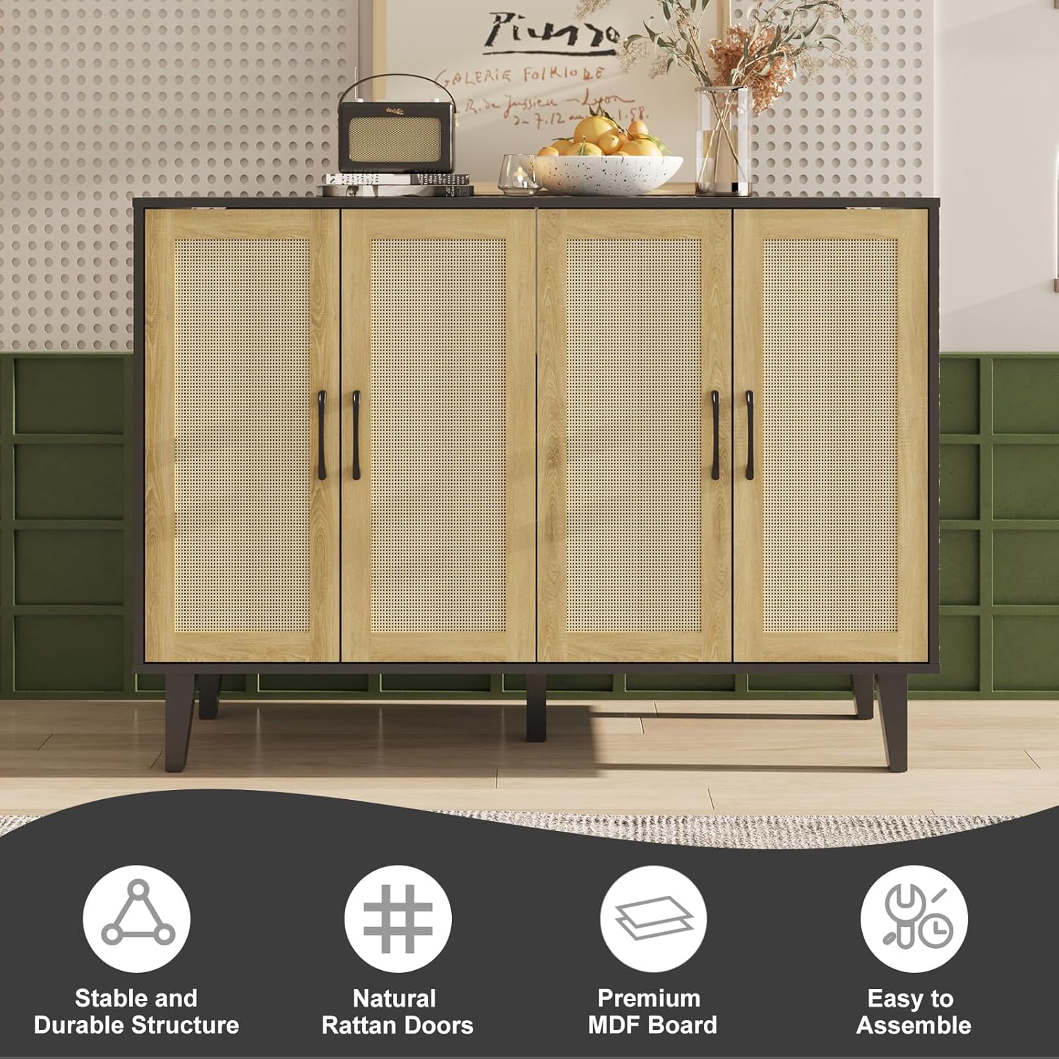 - 【Multiple Scenes】: This versatile rattan sideboard buffet not only stores items, but is also a nice addition to your home decor, and it goes with many different decor styles. We can use this decorative accent cabinet as a TV cabinet table, media console, rattan dresser, entryway cabinet, shoe cabinet, kitchen pantry cabinet and more.