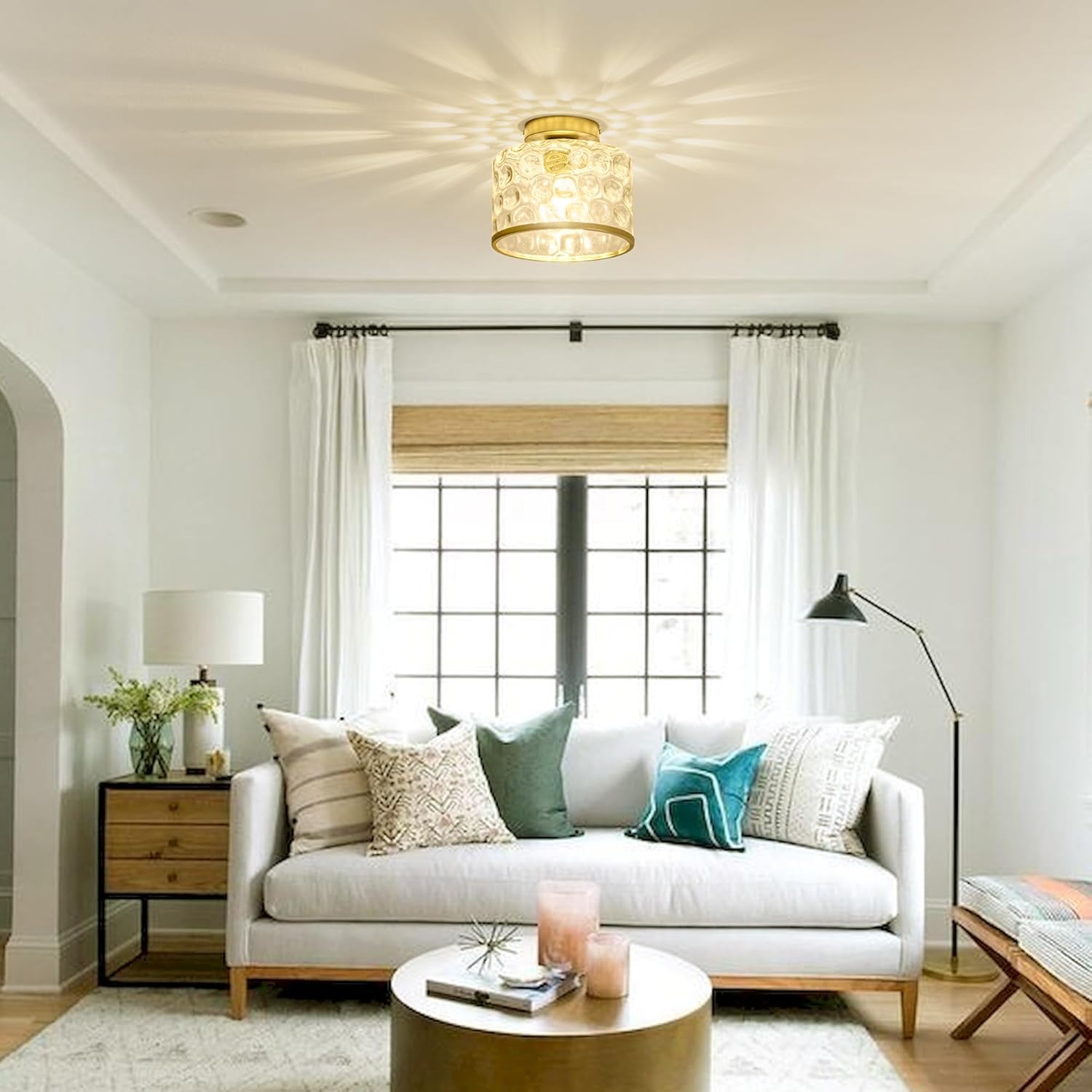 - Size Specification:This gold ceiling light With diameter of 8.78 inches, and a height of 6.8 inches, this light fixture is of a moderate size, making it suitable for various spaces.