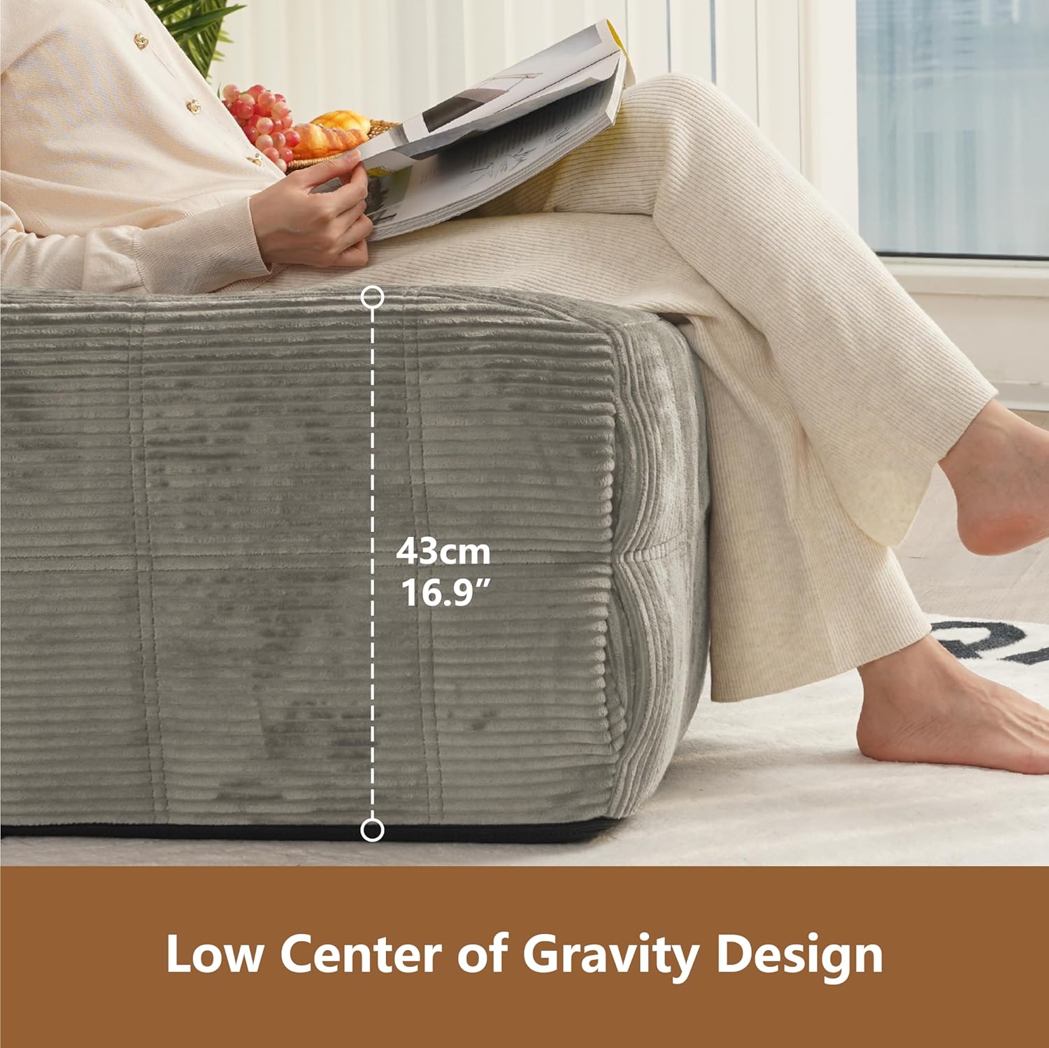 N&V CUBICUS Sofa, Single Seated Foam Sofa, Armless Floor Sofa, ALL NEW HYBRID FOAM Design, with Matching Ottoman (Harbour Gray)
