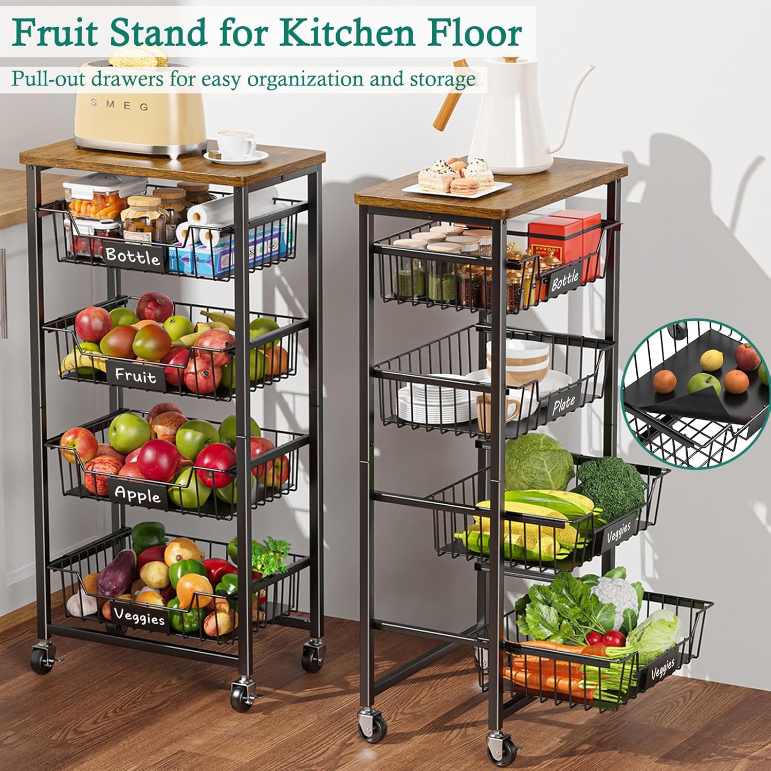 - Versatile Storage Cart:Featuring a wood-look top layer and four drawer baskets, this 5-tier kitchen cart on wheels can serve multiple purposes, and be utilized as a kitchen organizer, fruit and vegetable basket, produce basket, toy storage bins, can dispensers, toiletries holder, pet supplies cart, or an office supplies organizer.