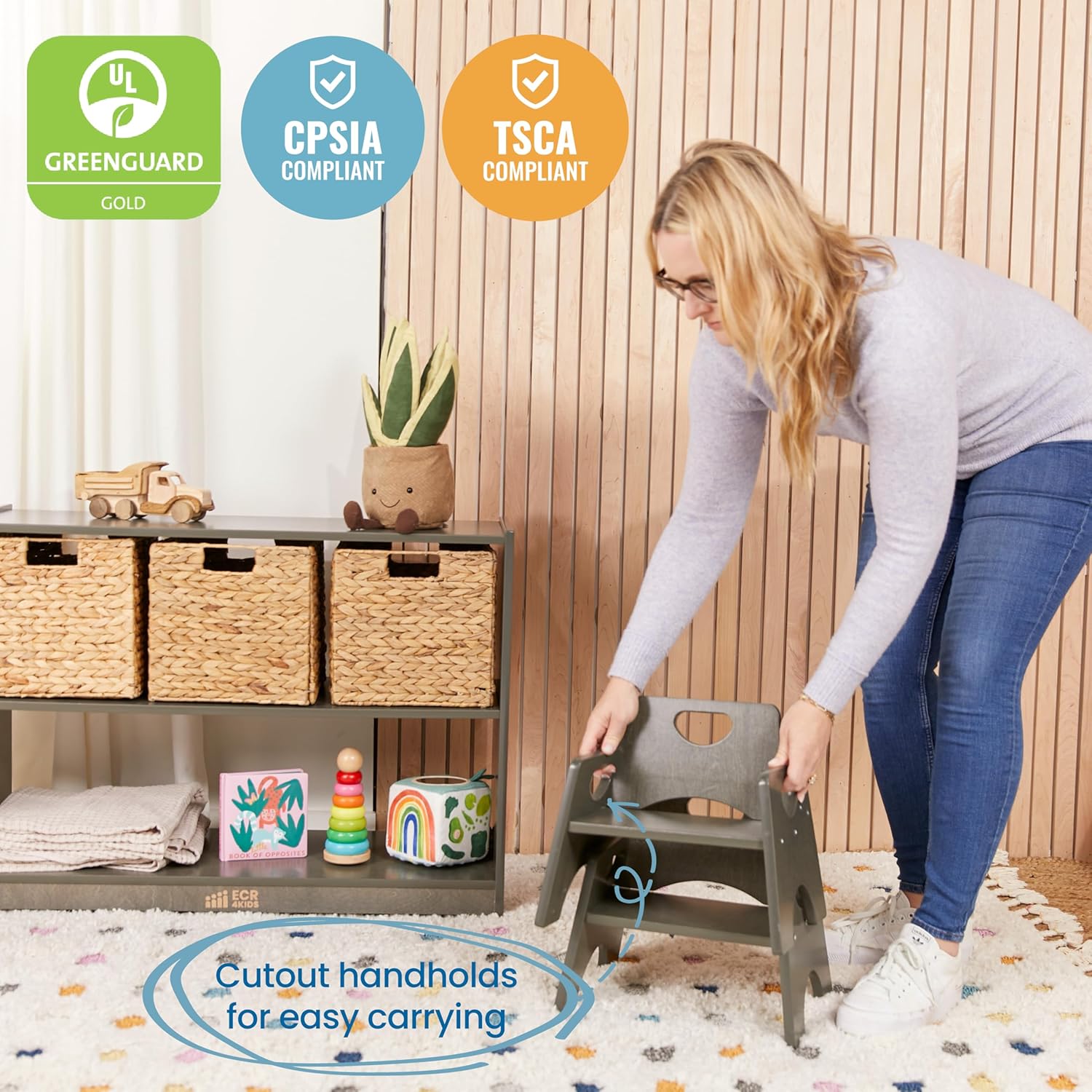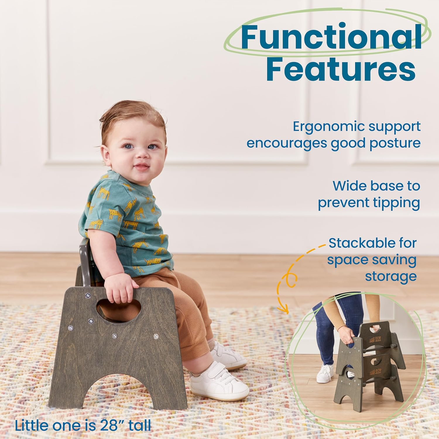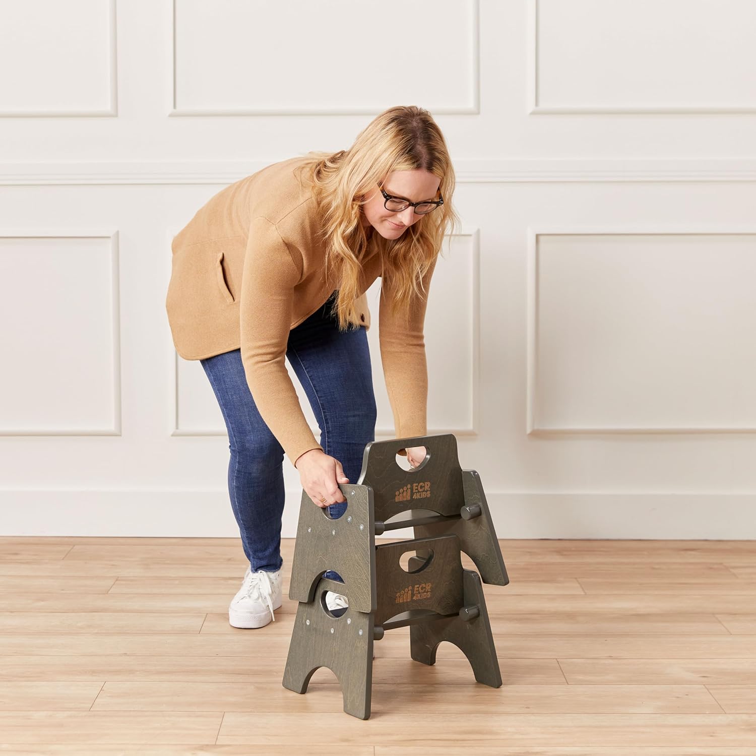 ECR4Kids Stackable Wooden Toddler Chair, 6in, Kids Furniture, Grey Wash, 2-Pack
