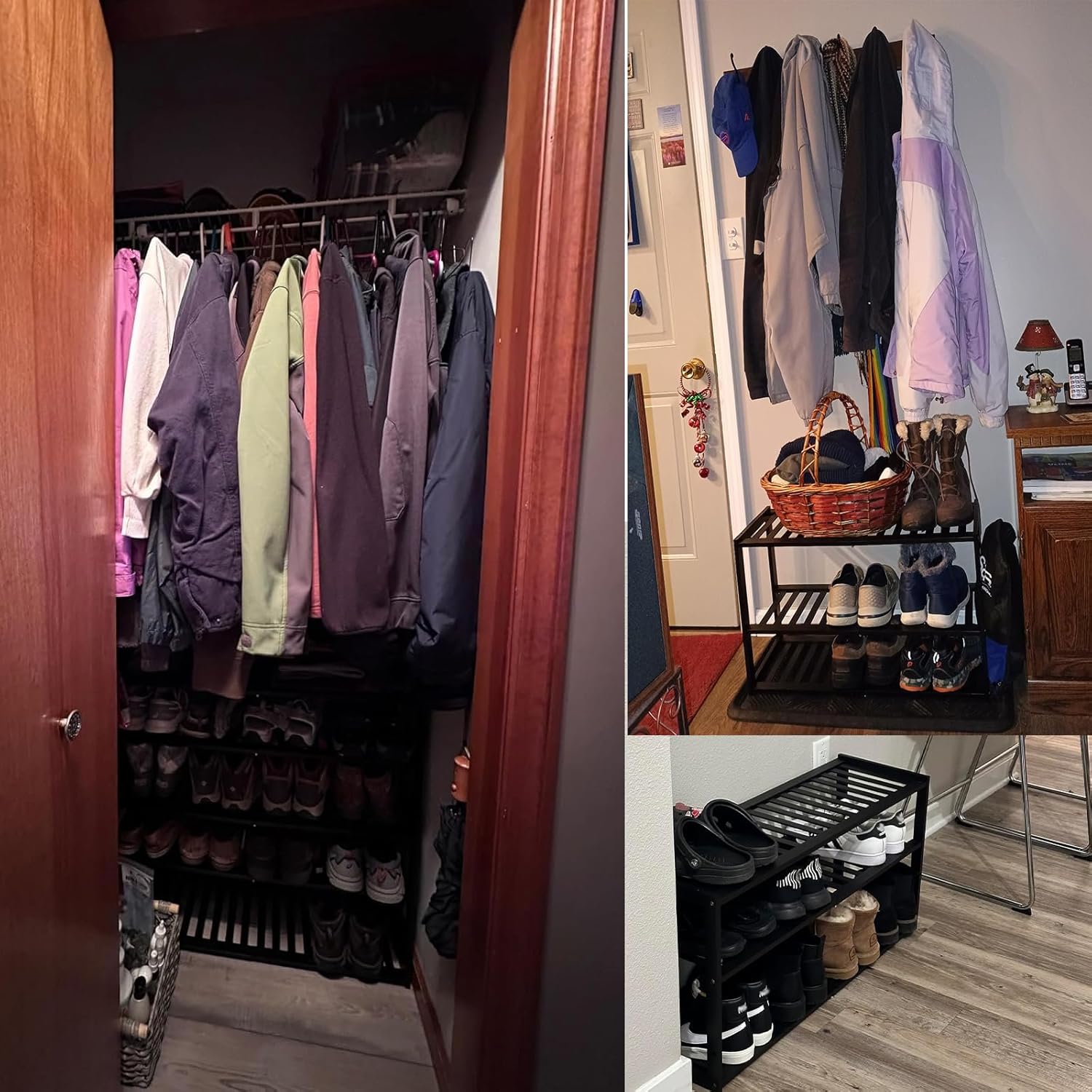 - šš©ššš-š¬ššÆš¢š§š & ššš«š¬ššš¢š„š: Let you get rid of shoes with nowhere to put them in the entryway, making the home more clean and tidy. (Bamboo wood is suitable for almost any home decoration. It can be used as a book shelf or flower rack in the living room or bedroom, and it can also be used to put towels and toiletries in the bathroom.) A stackable shoe rack is a great solution to keep your entryway, hallway, closet, dormitory, patio, living room, mudroom, and garage away from the mess.