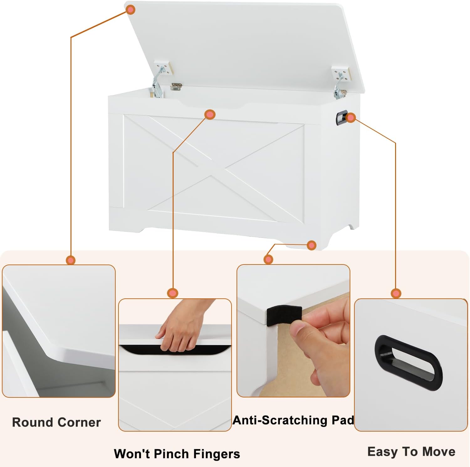 - High Load Capacity - Made of particleboard, the wooden storage chest supports up to 300 lb. In addition, Gel Bumpers under the hinged cover not only dampen accidental impacts but also provide more surface protection and noise suppression