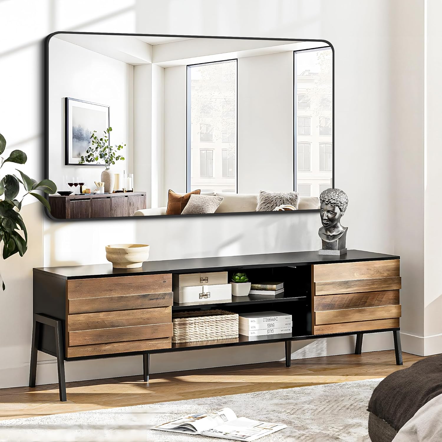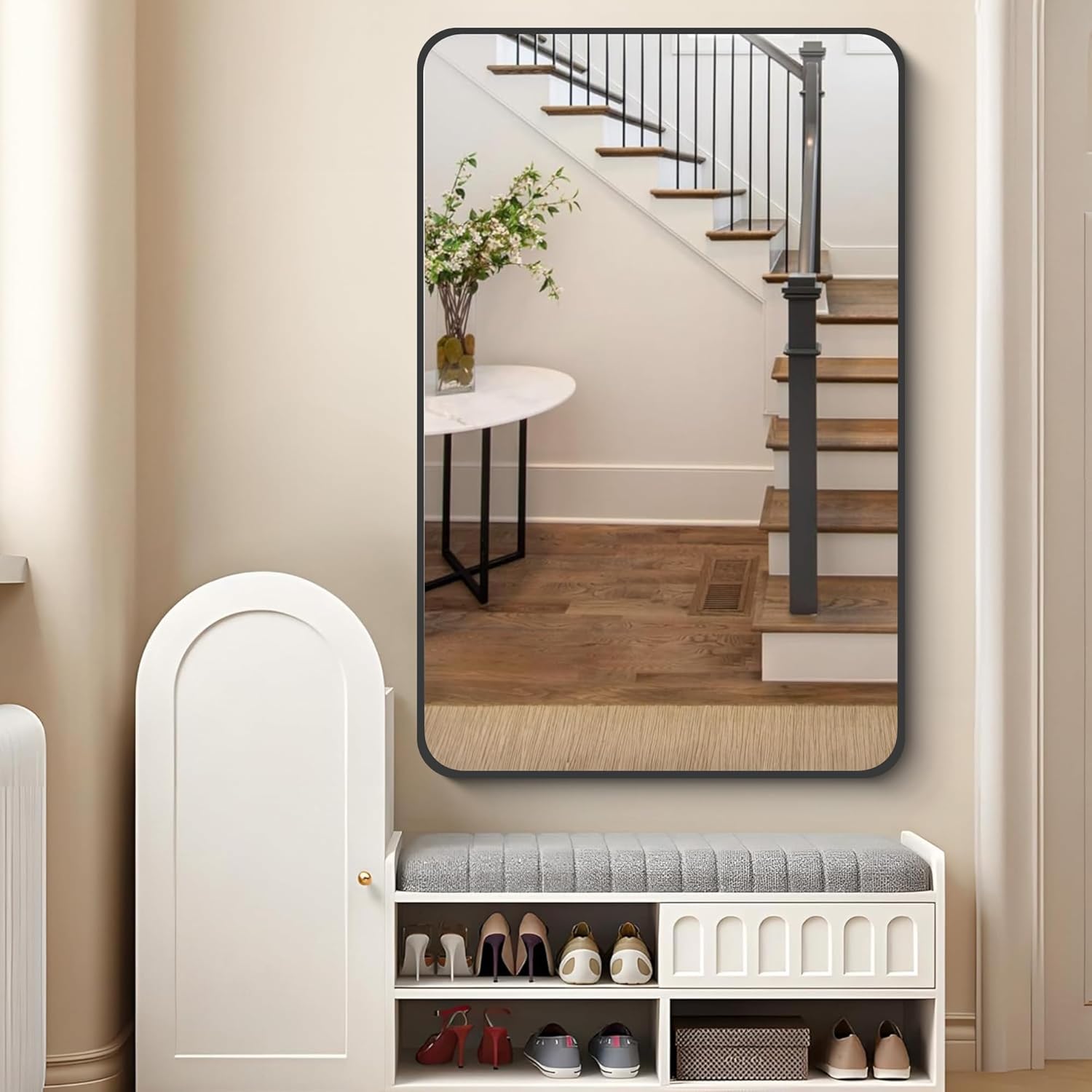 FORBATH Black Bathroom Mirror, Rectangular Vanity Mirror 30 x 48 Inch Wall Rounded Corner Metal Framed Bathroom Mirror for Living Room Bedroom Entryway Decor (Horizontal/Vertical)