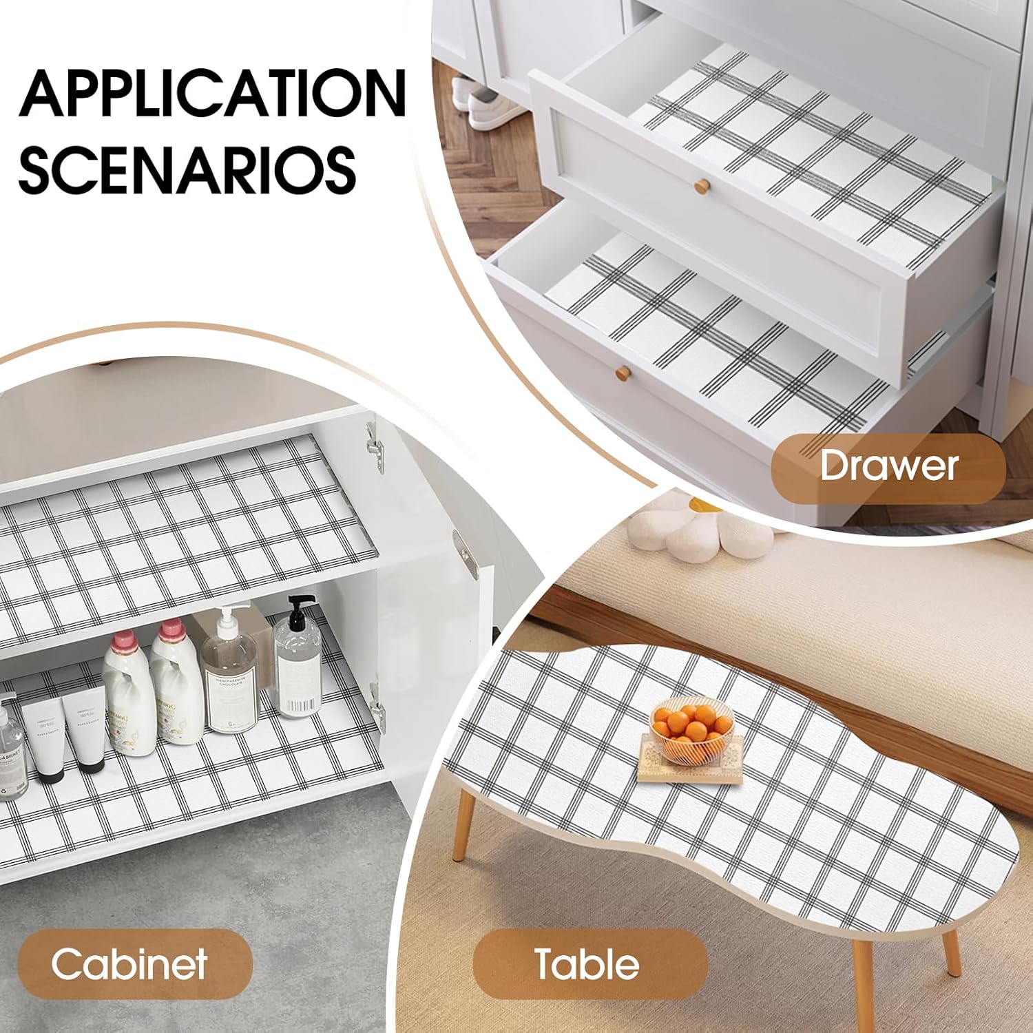 - Easy to Trim and DIY:The non-slip cabinet liner can be easily trim to fit any size or shape of shelves, drawers and cabinet, simplicity and elegance, making your home more fashionable and visually appealing