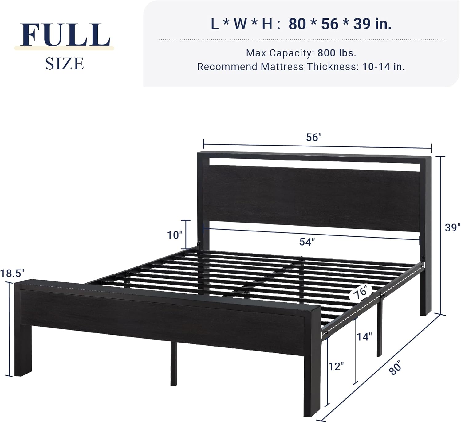 Allewie Full Size Platform Bed Frame with Wooden Headboard and Footboard, Heavy Duty 12 Metal Slats Support, No Box Spring Needed, Under-Bed Storage, Noise Free, Easy Assembly, Black Oak