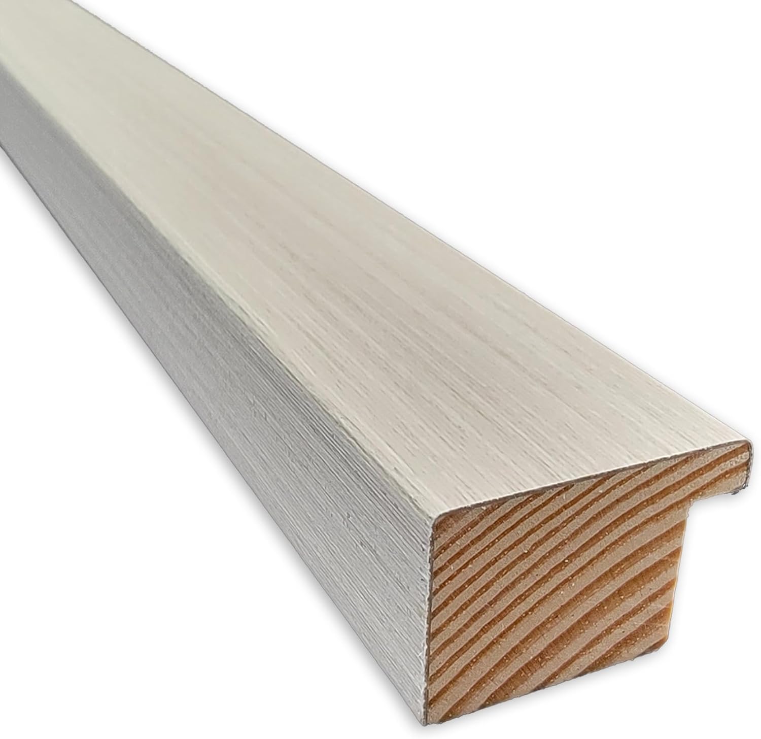 - WOOD FRAME DETAILS: The Woodgrain Stripe Grey Frame is a grey beige frame with a flat surface, stripe-like variegated coloring and wood grain markings. The frame is 1.25 in. wide and stands 0.75 in. off the wall.