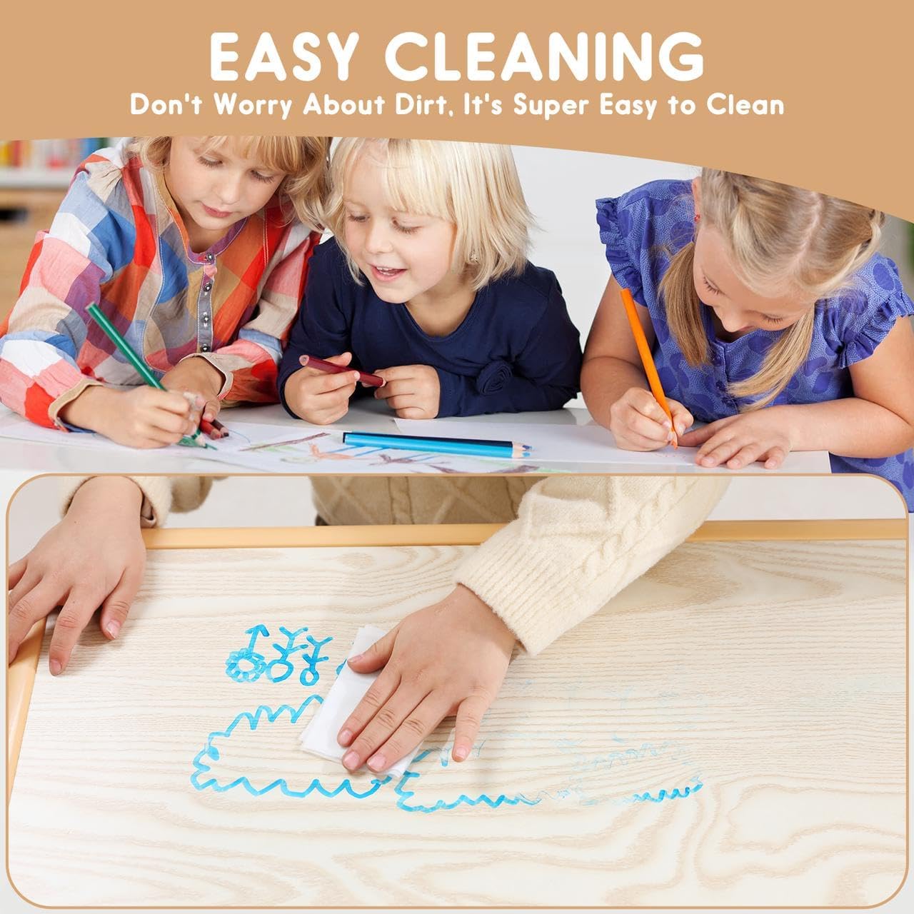 - π¬πππ π¨πππππππ, πͺπππππππππ πͺπππππππ: Detailed assembly videos and instructions make setup a breeze, taking under 20 minutes for independent assembly - even faster with an electric screwdriver! Whether it showcases "Starry Night" or "Daisies," a damp cloth swiftly restores the smooth table surface to its pristine condition. Providing limitless creative space for kids while offering hassle-free cleaning for parents.