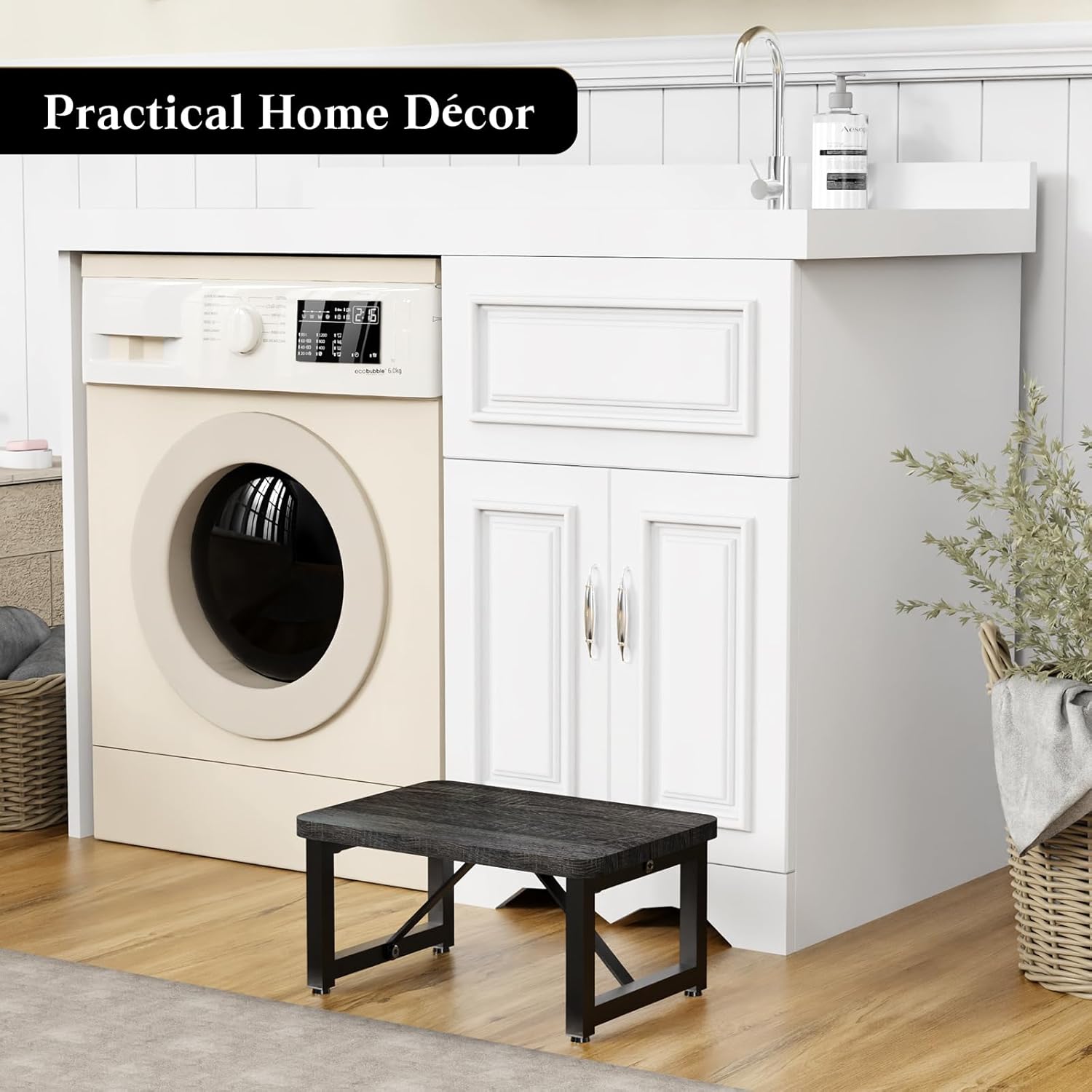 - Multi-Purpose Use: This step stool is a good assistant in various scenes. It could be a step ladder in bathroom, helping kids to wash hands and brush teeth. It also can be a small shoe changing stool for toddlers, a foot stool under desk to relax your foot, and a short stand for objects like computer monitor and plants.