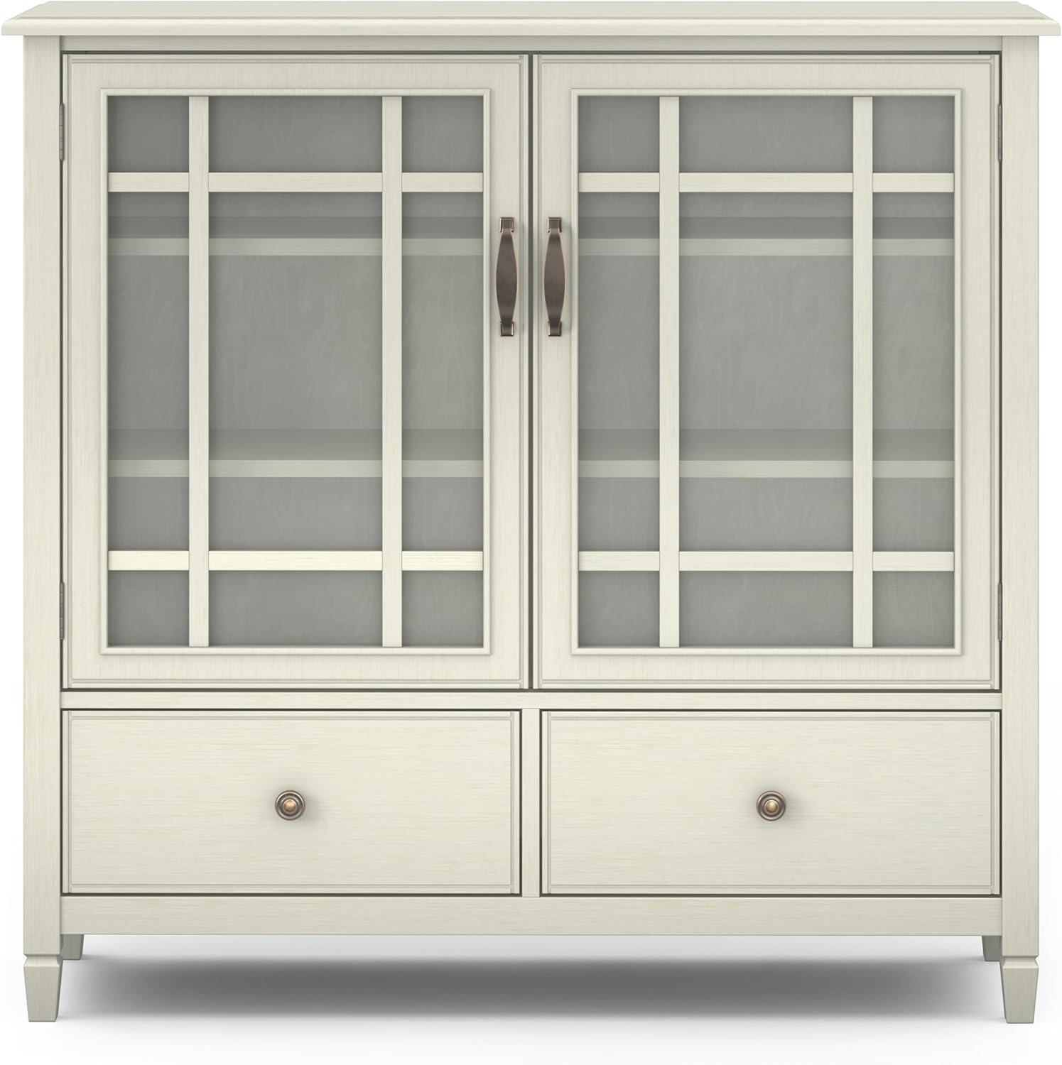 SIMPLIHOME Connaught SOLID WOOD 46 inch Wide Traditional Tall Storage Cabinet in Antique White for the Living Room, Entryway and Family Room
