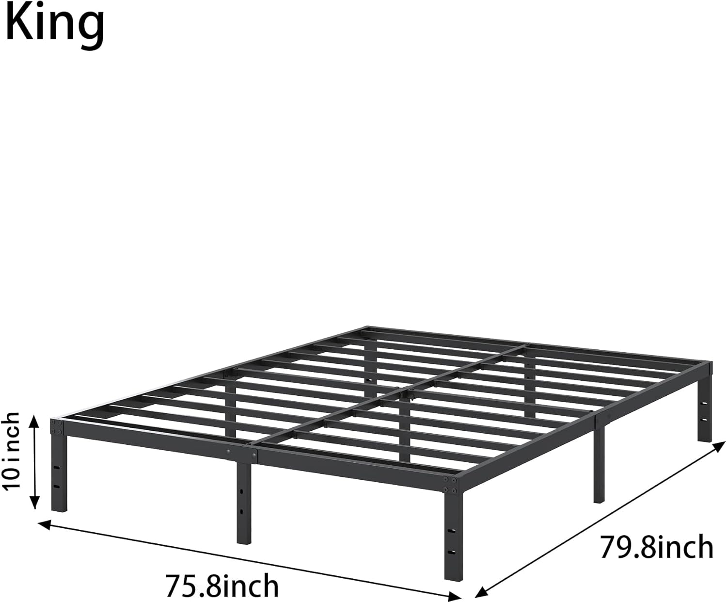 10 Inch King Size Bed Frame, Platform Metal Bed Frame King Heavy Duty Steel Slat Mattress Foundation, No Box Spring Needed, Easy Assembly, Noise-Free, Black