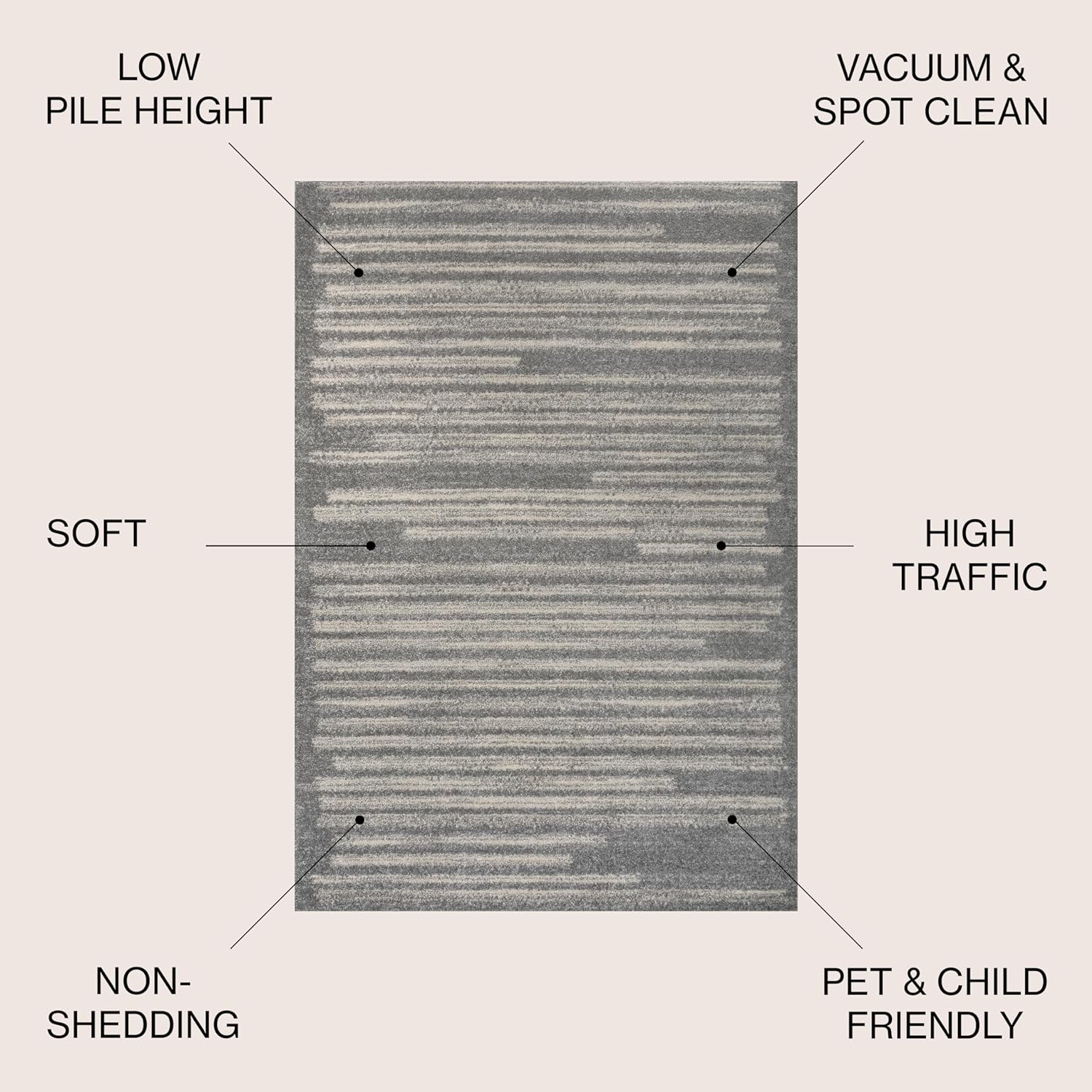 JONATHAN Y Khalil Modern Berber Stripe Gray/Cream Indoor Area Rug, 5x8, Contemporary, Bohemian, Easy-Cleaning for Living Room, Bedroom, Kitchen, Pet Friendly, Non-Shedding (MOH207G-5)