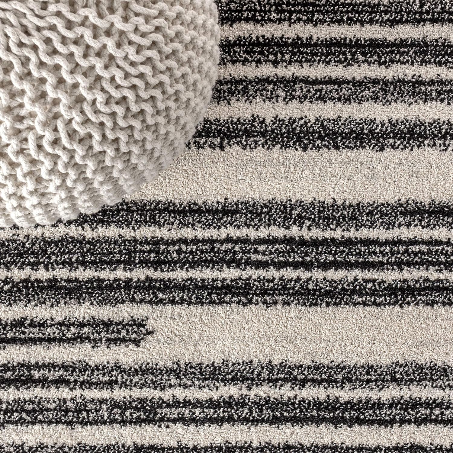 JONATHAN Y Khalil Modern Berber Stripe Cream/Black 4x4 Square Indoor Area Rug, Contemporary, Bohemian, Easy-Cleaning for Living Room, Bedroom, Kitchen, Pet Friendly, Non-Shedding (MOH207A-4SQ)
