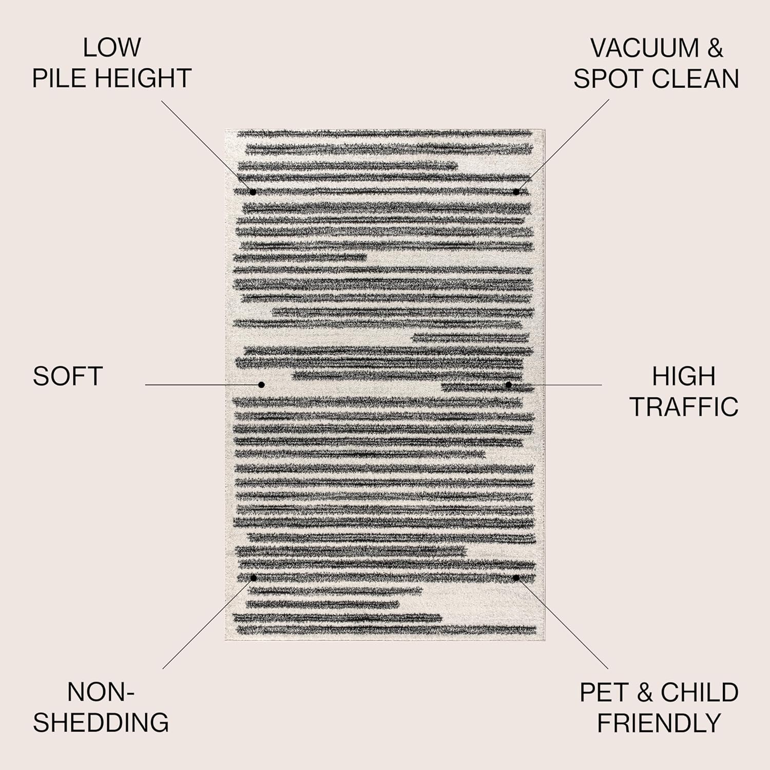 - The cream and black color scheme reproduces the look of neutral, mid-century tribal rugs