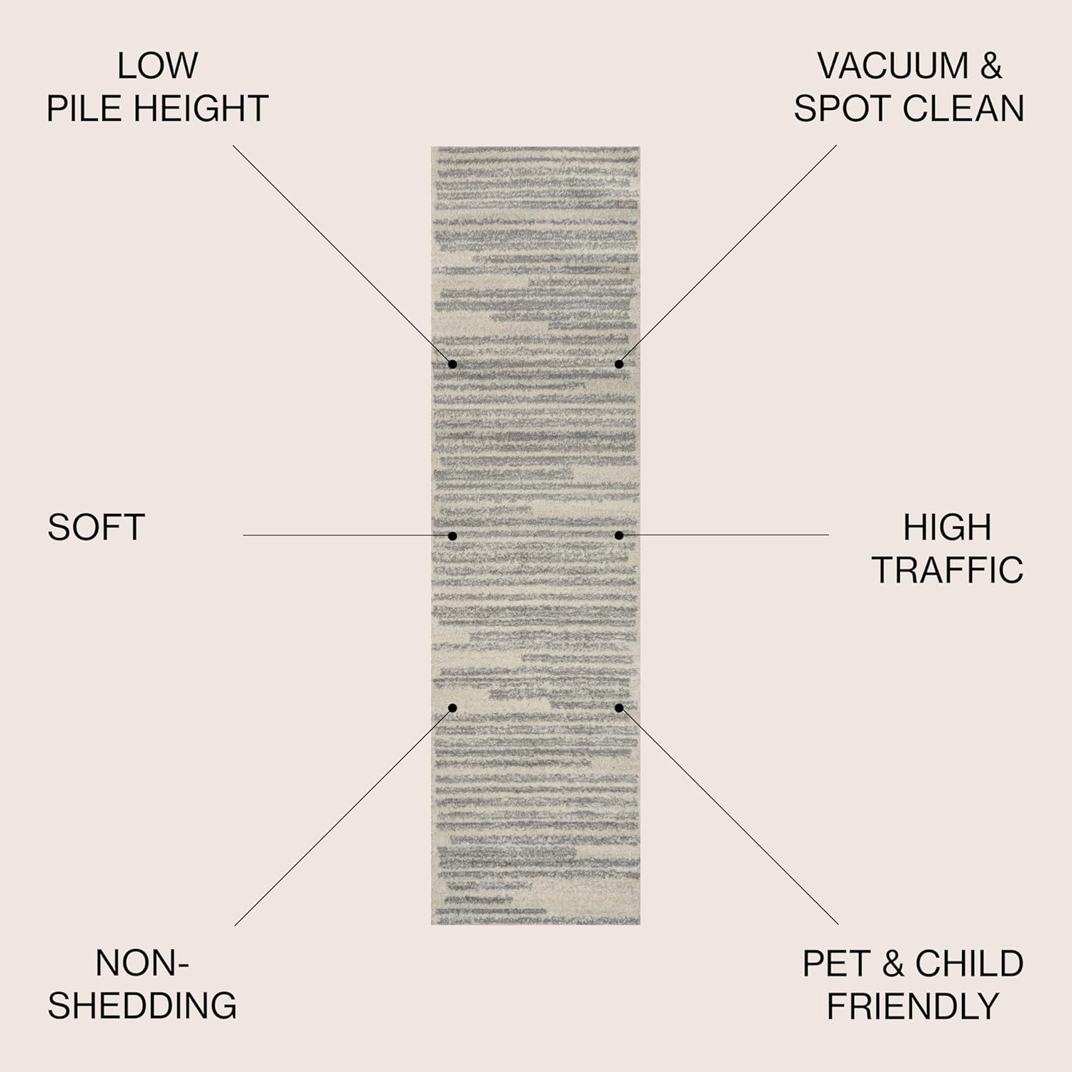 - Low 0.39" pile of synthetic fiber construction