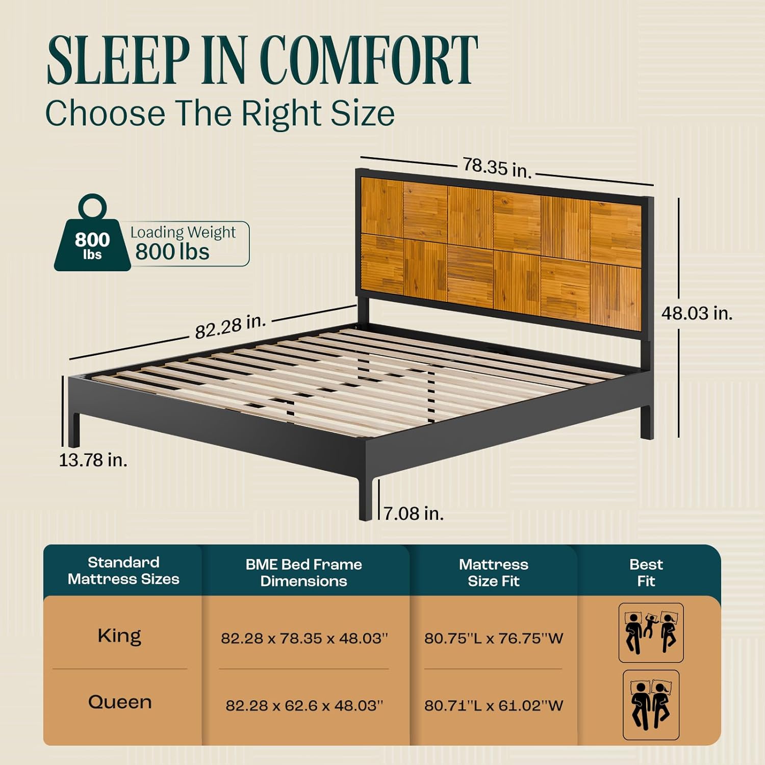 - STURDY SOLID WOOD BED FRAME KING: Sleep soundly knowing our wooden bed frame king size can handle an impressive weight capacity of up to 800 pounds, providing exceptional wood king bed frame for you and your loved ones