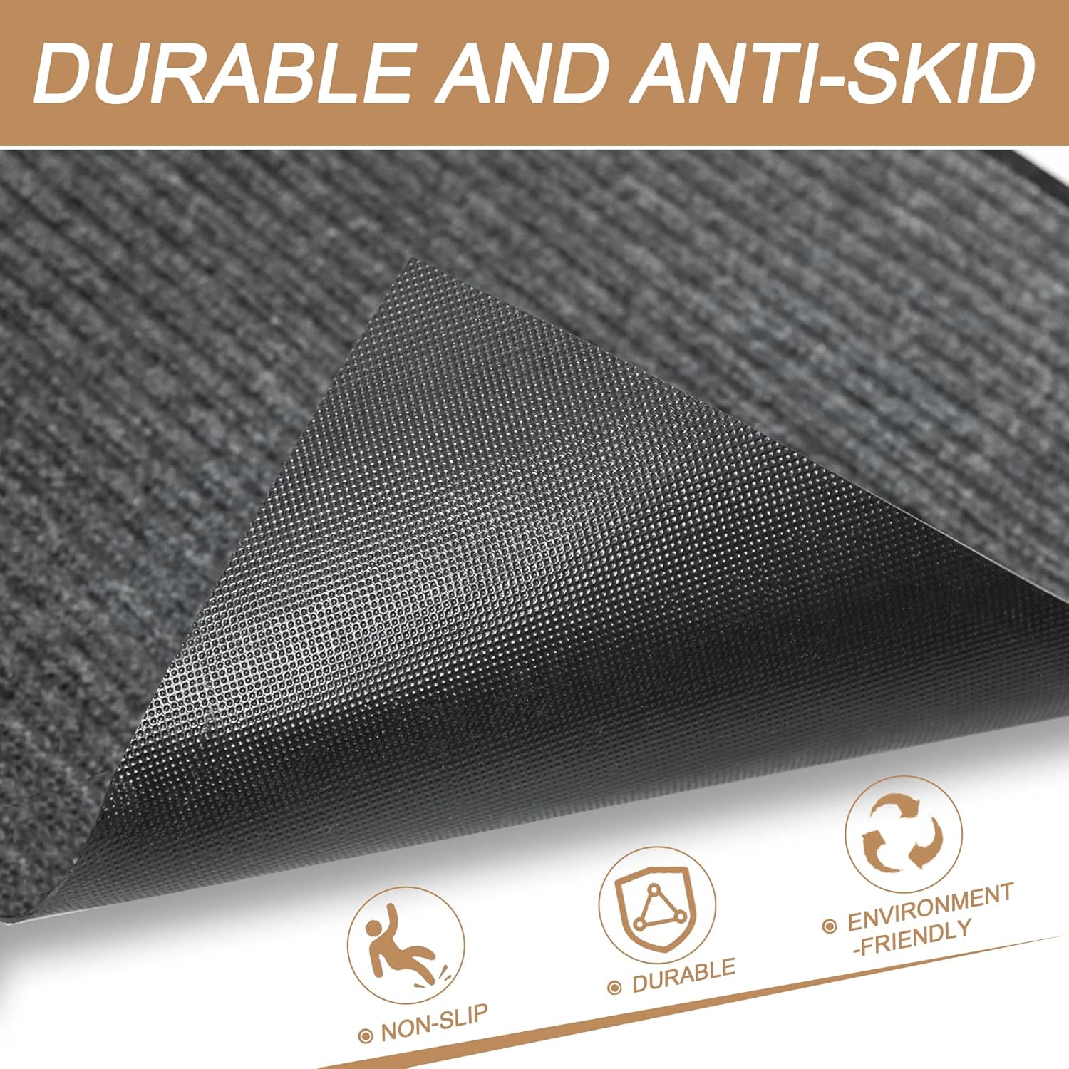 - Non-Slip Bottom: The door mat indoor outdoor entrance rug is made of premium polyester and textured PVC rubber backing which keeps the floor mat stays in place and prevents moisture leaks. The thick and plush topside is gentle on bare feet, but durable for boots.