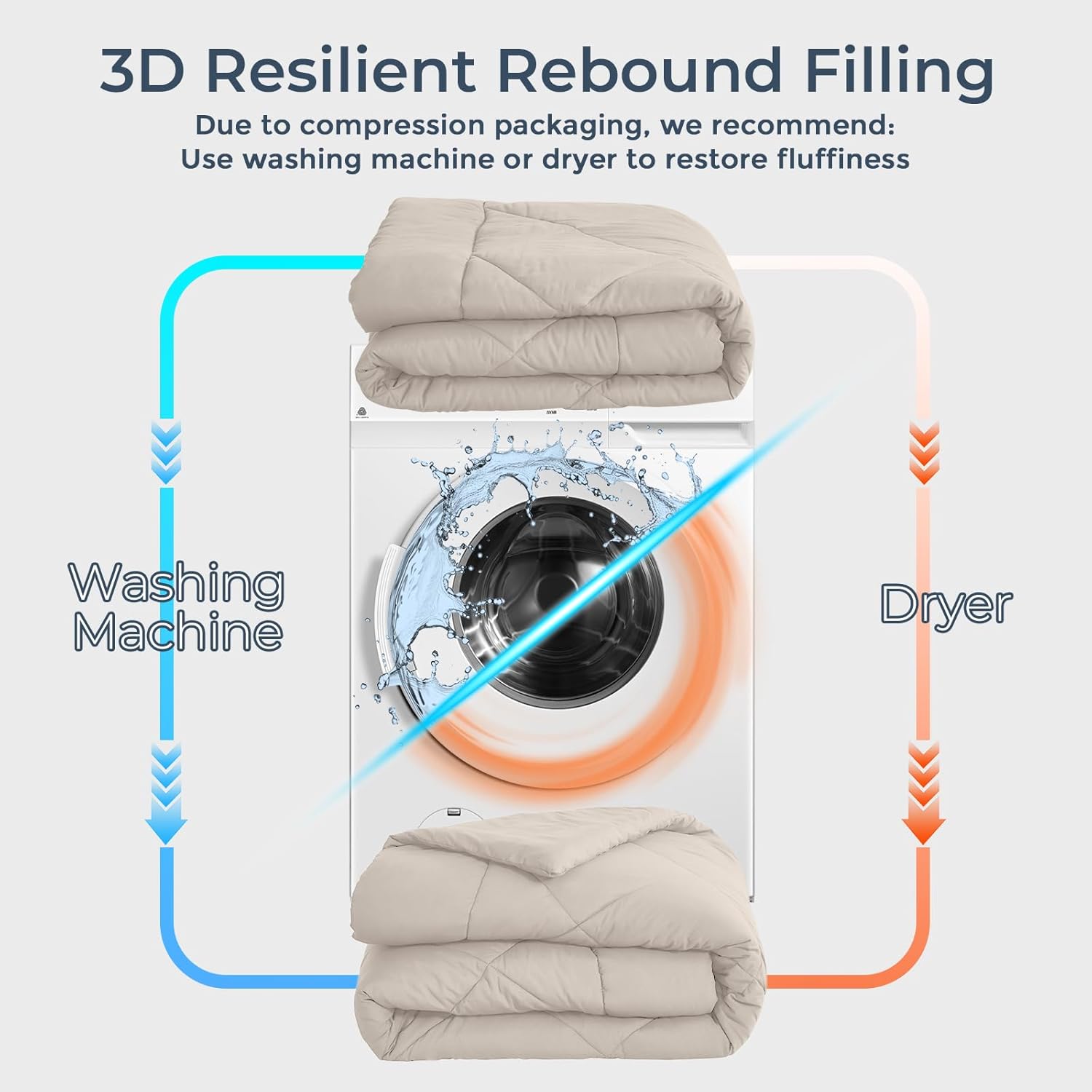 HEVUMYI Beige Tan King Comforter Set - 7-Piece All Season Bed in a Bag King, Ultra Soft Bedding Set with Comforter, Flat Sheet, Fitted Sheet, Pillowcases, Pillow Shams, Beige Tan